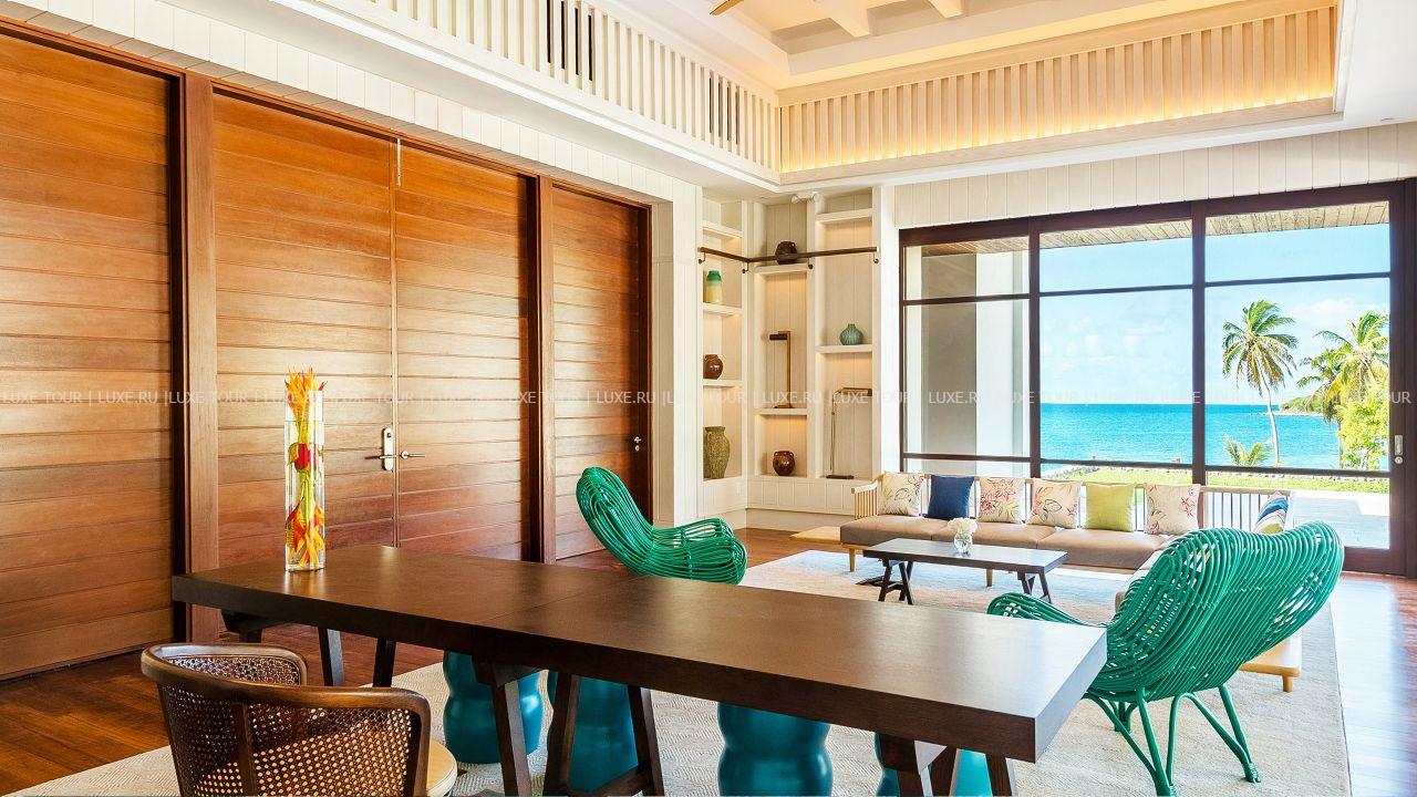 - Ресторан Great House, открытый в течение всего дня, располагает уютным залом, террасой с видом на залив, баром Rum и зимним садом, где подают послеобеденный чай.