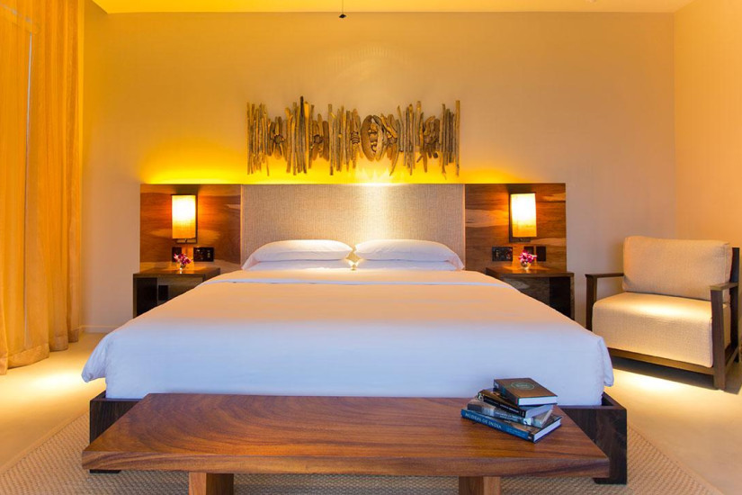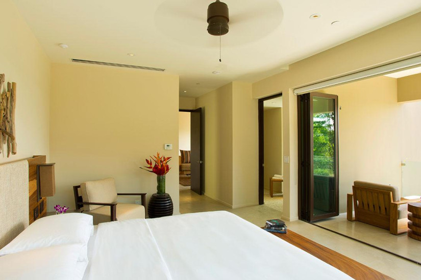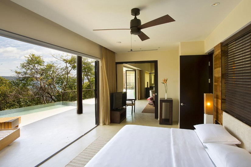 - 299 м2. Шикарный номер состоит из двух спален (с кроватью king-size и двумя кроватями twin), просторной гостиной с обеденной зоной, кухни, двух ванных комнат (одна – с ливневым душем и ванной на открытой террасе), внутреннего двора, большой террасы с бассейном, зоной отдыха и панорамным видом на тропический лес и залив Кулебра Максимальное размещение – 6 человек.