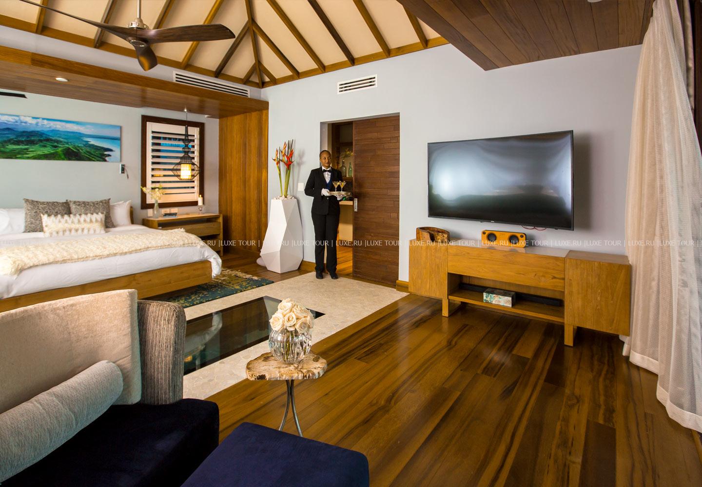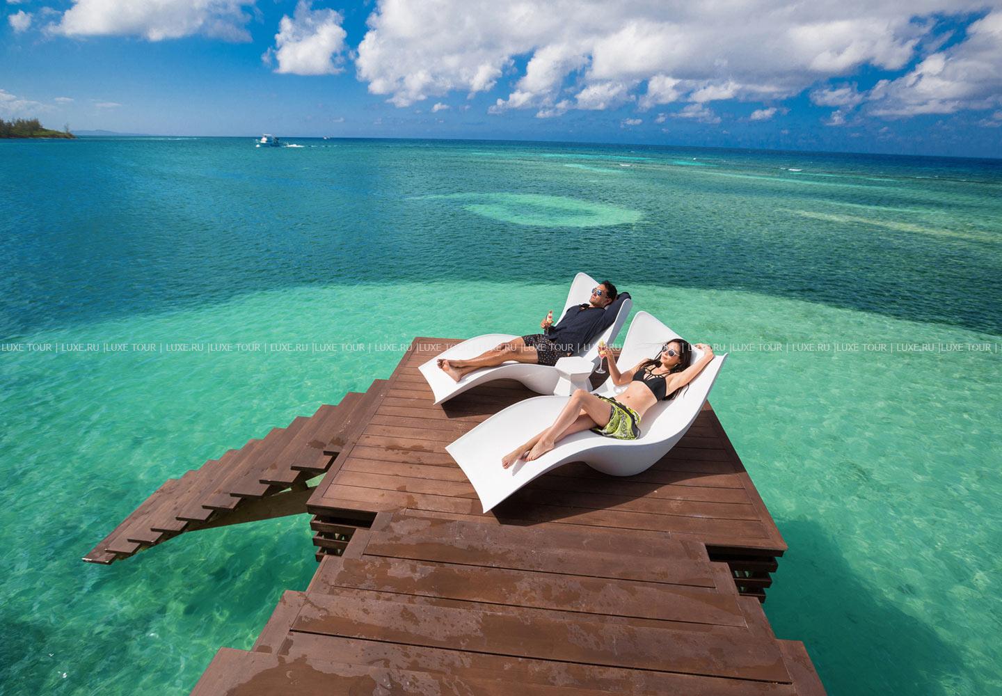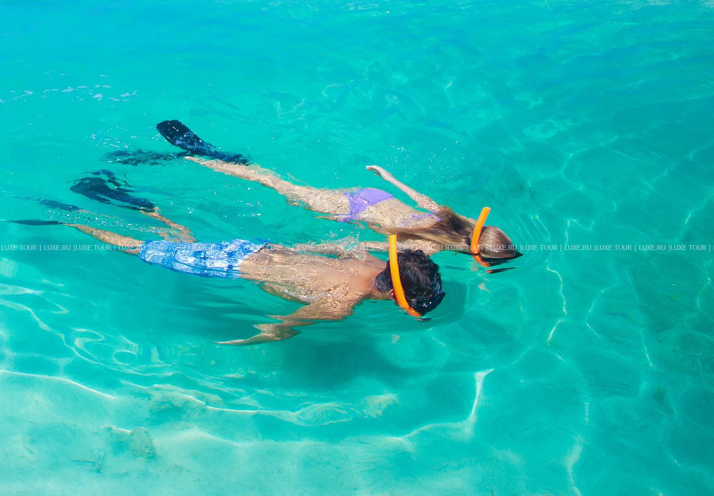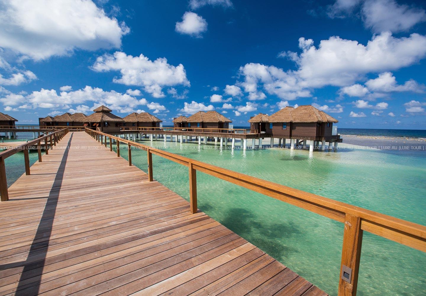 Отель располагает великолепным пляжем с белоснежным песком, а также пляжем на частном острове.