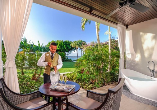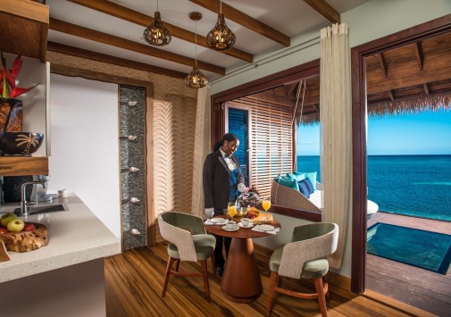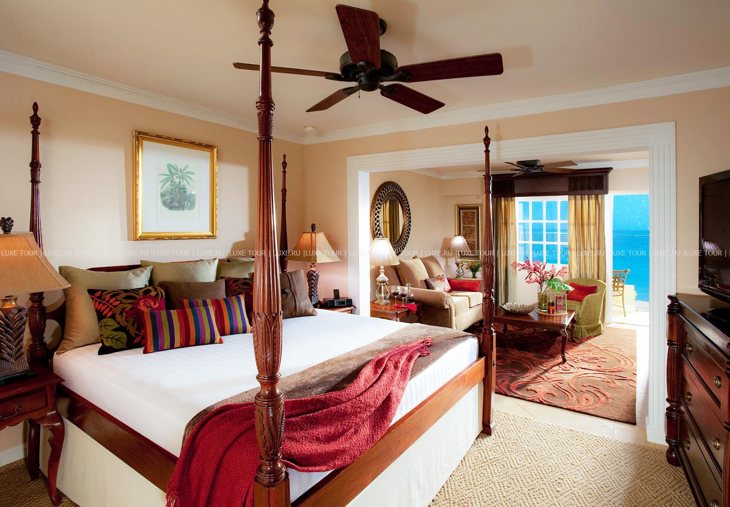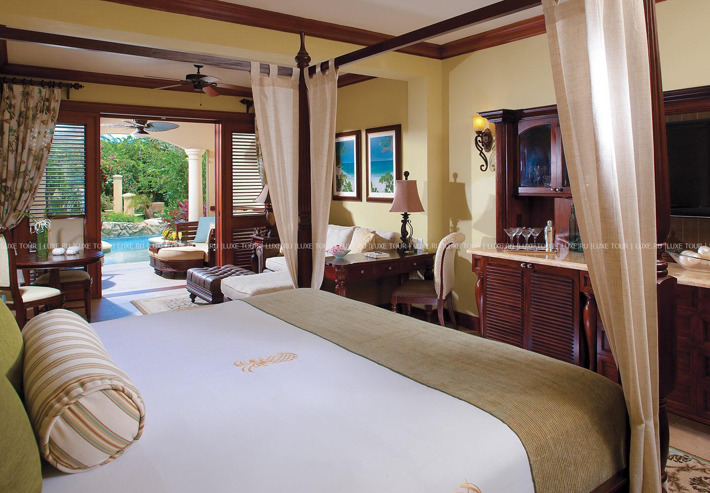 - Предлагается обслуживание в номерах и доступ в 12 ресторанов соседних отелей сети Sandals.