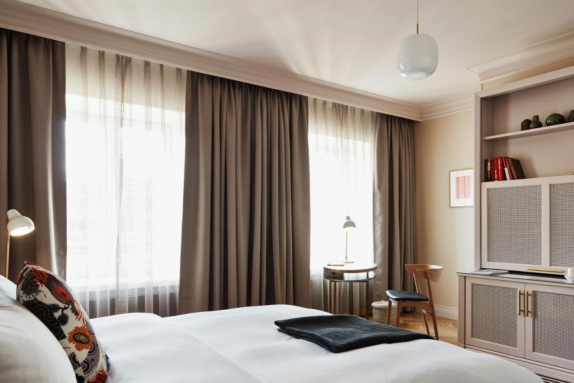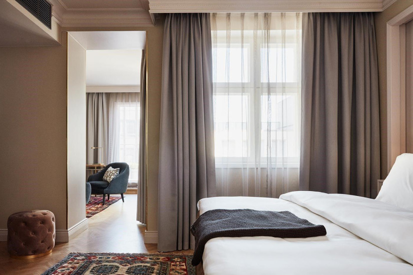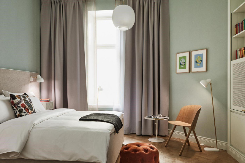 - В отеле 153 номера различных категорий, включая 148 Guest Rooms и 5 Suites. Номера сочетают современный комфорт и элегантные интерьеры, воссоздающие историческое прошлое отеля, а из окон и с балконов открывается прекрасный вид на парк Старой церкви и центр Хельсинки.