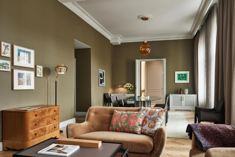 - 62 м2 + два балкона по 10 м2. Фешенебельный номер с куполообразным потолком состоит из спальни с кроватью king-size, гостиной, ванной комнаты с ванной и ливневым душем, двух балконов с панорамным видом на парк Старой церкви и город. Номер расположен на 6 этаже. Возможно соединение с Atelier Room.