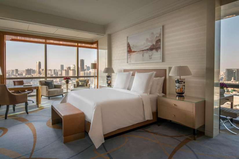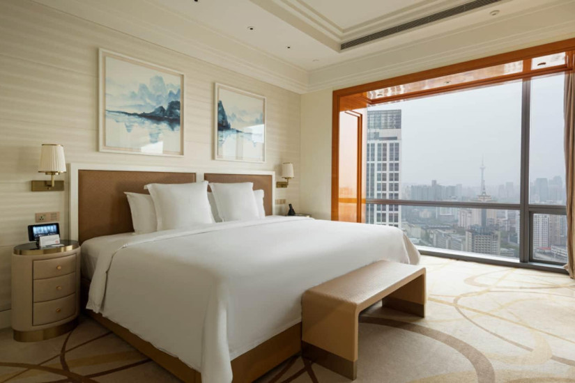 - В отеле 259 номеров различных категорий, включая Guest Room и Suite. Просторные комфортабельные номера расположены с 11 по 26 этажи башни и декорированы в элегантном классическом стиле, а из панорамных окон открывается прекрасный вид на Тяньцзинь.