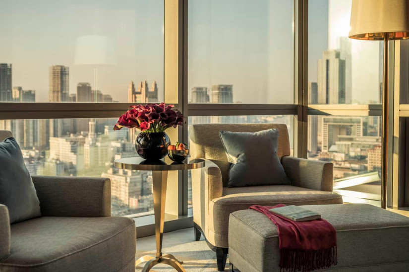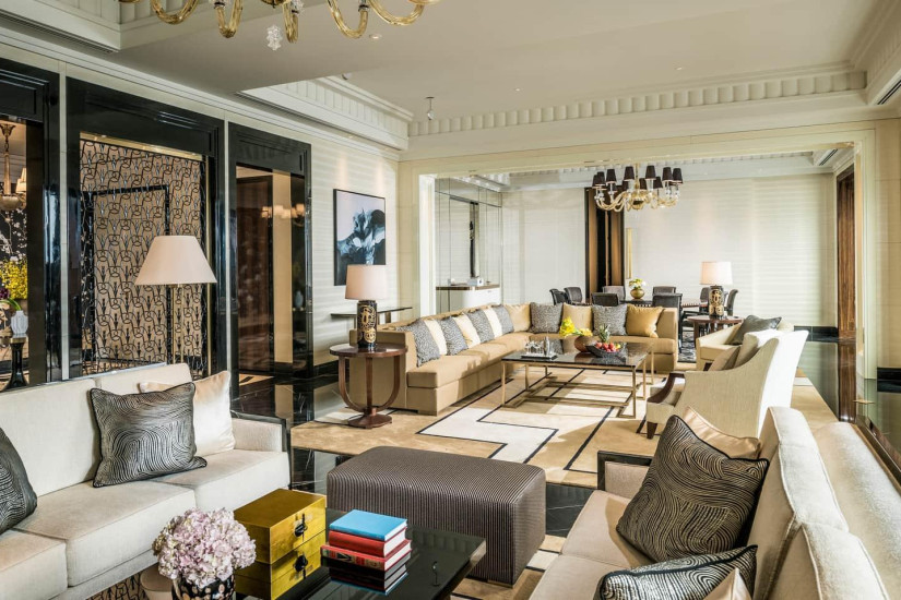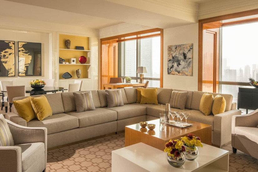 - 152 м2. Состоит из спальни с кроватью king-size или двумя кроватями twin, просторной гостиной с зоной отдыха и обеденной зоной на 5 персон, ванной комнаты с ванной. Вид на город. Максимальное размещение – 3 взрослых или 2 взрослых + 1 ребенок. Гостям номера предоставляется доступ в клубную гостиную и дополнительные услуги Executive Club.