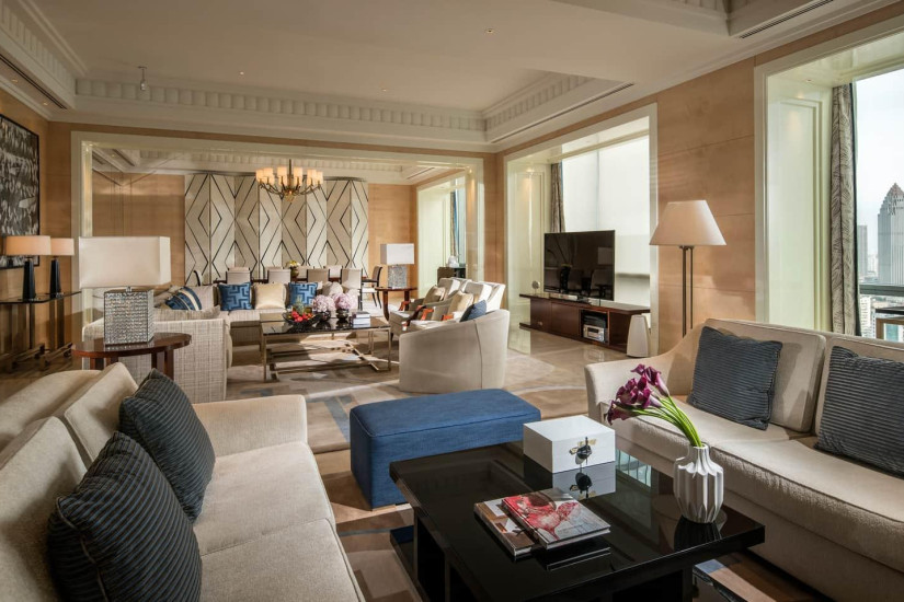 - 269 м2. Фешенебельный номер состоит из спальни с кроватью king-size, просторной гостиной, столовой с обеденной зоной на 10 персон, гардеробной, ванной комнаты с ванной и душем, гостевой туалетной комнаты. Панорамный вид на город. Максимальное размещение – 3 взрослых или 2 взрослых + 1 ребенок. Гостям номера предоставляется доступ в клубную гостиную и дополнительные услуги Executive Club.