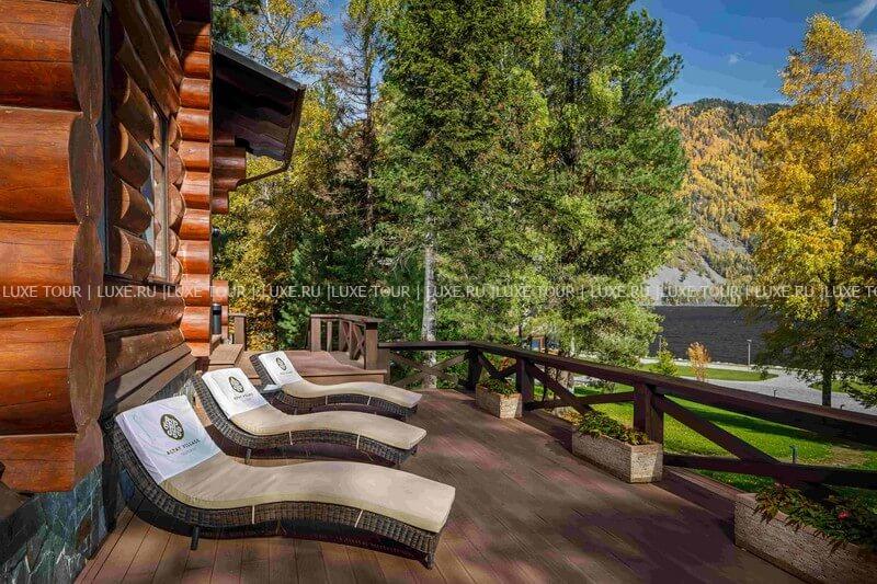 Все уединённые шале курорта выполнены из массива кедра и сочетают в себе эксклюзивный, современный дизайн с использованием самых экологичных материалов. Продуманный до мельчайших деталей интерьер подарит ощущение уюта и комфорта, а просторные спальни, гостиные с панорамными окнами и террасы откроют невероятные виды на Телецкое озеро и бескрайнюю тайгу.