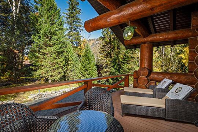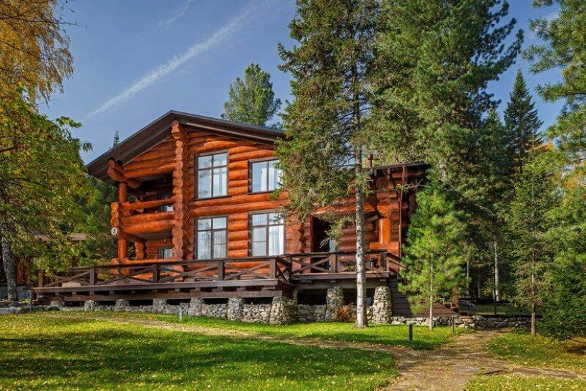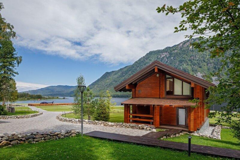 - 120 м2. Состоит из двух спален с большими двуспальными кроватями и просторной гостиной с отдельной обеденной зоной и кухней, собственной мангальной зоны, большой террасы с видом на Телецкое озеро.