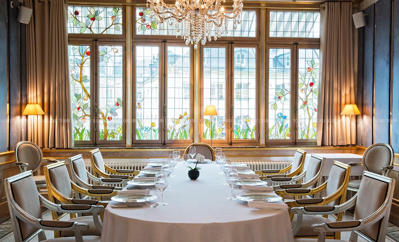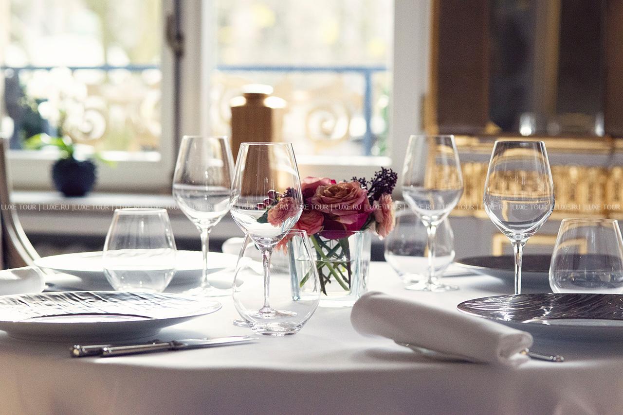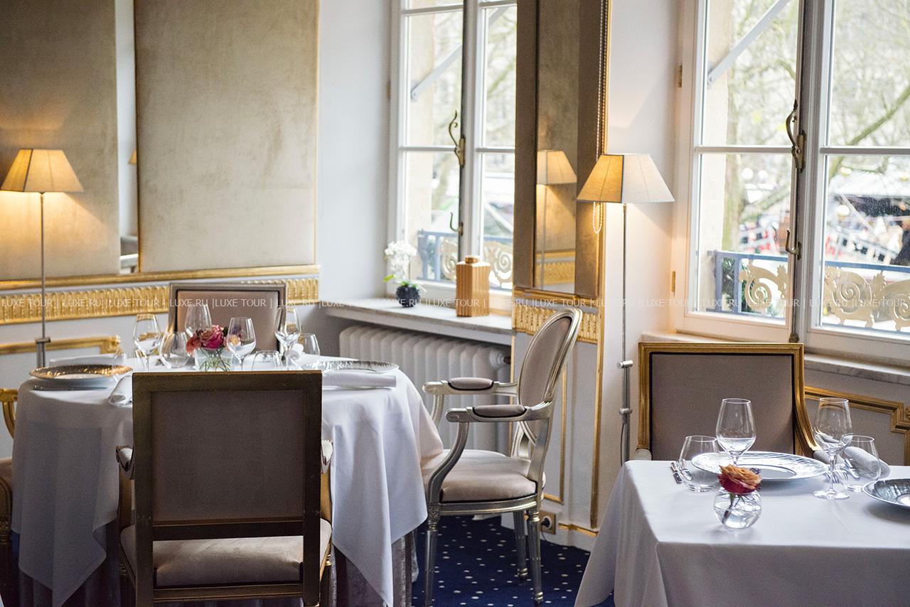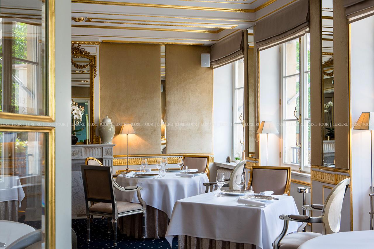 - Роскошный гастрономический ресторан La Cristallerie, отмеченный наградами гидов Мишлен и ГоМийо, предлагает изыски высокой кухни и богатую карту вин.