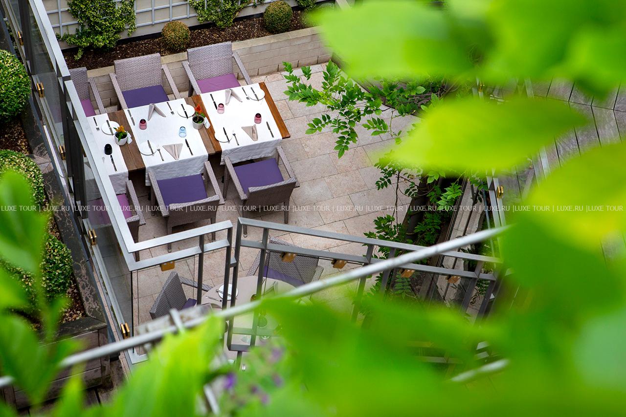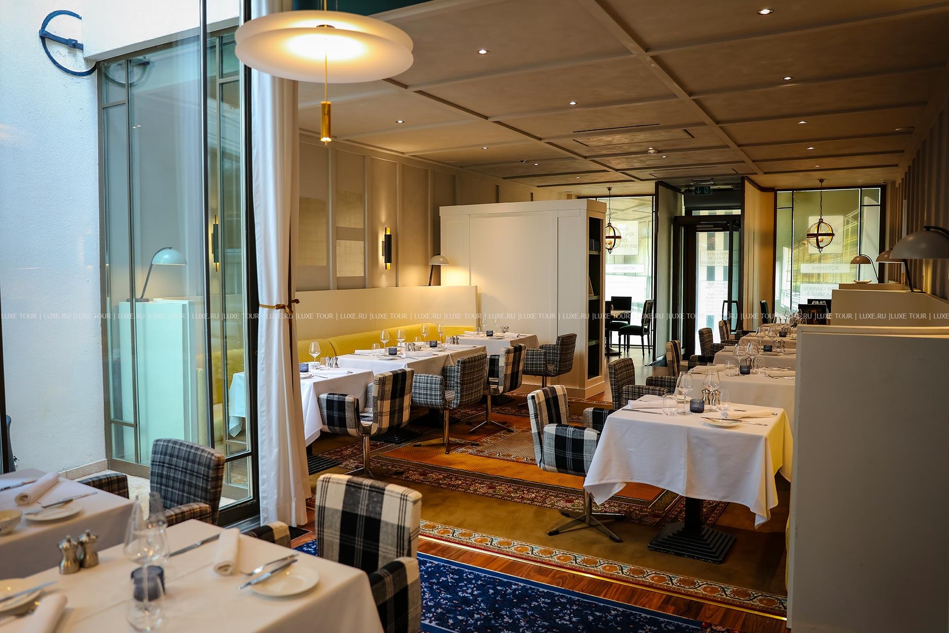 - Элегантный ресторан Plëss с открытой террасой также награжден колпаками ГоМийо.