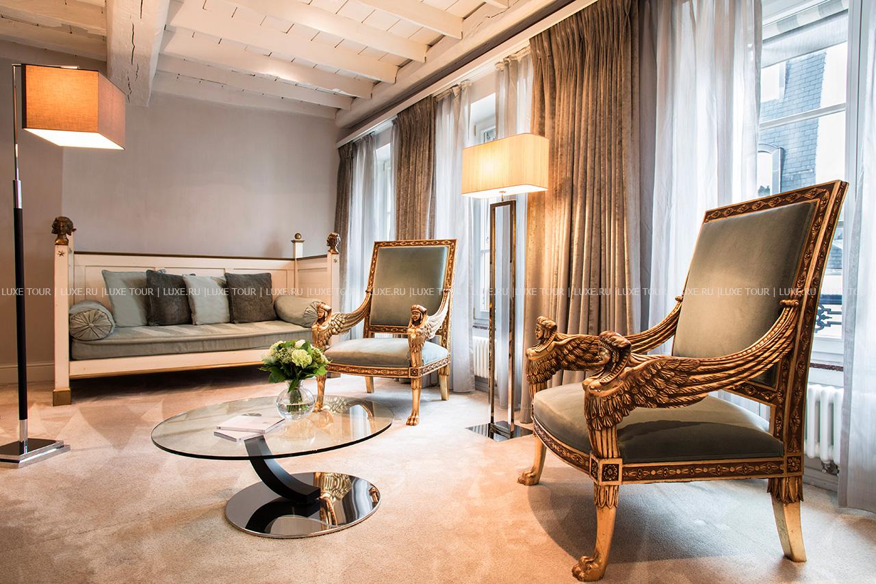 Hotel Le Place d’Armes, Люксембург расположен в самом центре города, на площади Оружия, которая и дала название этому очаровательному бутик-отелю, занимающему несколько особняков XVIII века. За элегантным фасадом скрываются уютные внутренние дворики, террасы и переходы, а эклектичные интерьеры номеров и других помещений отеля сочетают современный дизайн и изысканный стиль ар-нуво. Также к услугам гостей три ресторана с отменной кухней, включая «мишленовский» ресторан La Cristallerie, фитнес-зал и Spa-салон, расположенные под сводами старинного погреба, залы для различных мероприятий и другой первоклассный сервис. Hotel Le Place d’Armes, Люксембург, входящий в престижную международную ассоциацию Relais & Châteaux, предлагает великолепные условия для знакомства со столицей Великого Герцогства.