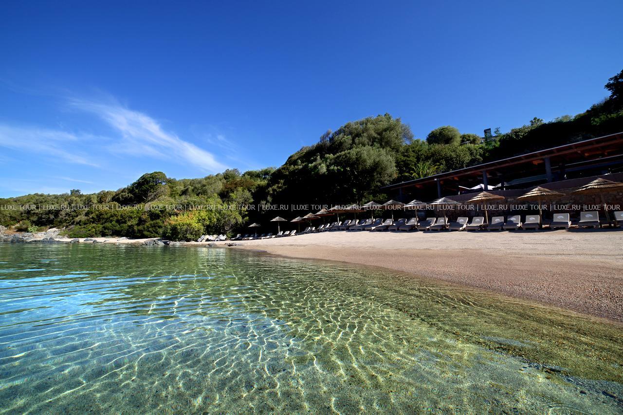 Отель располагает частным песчаным пляжем.