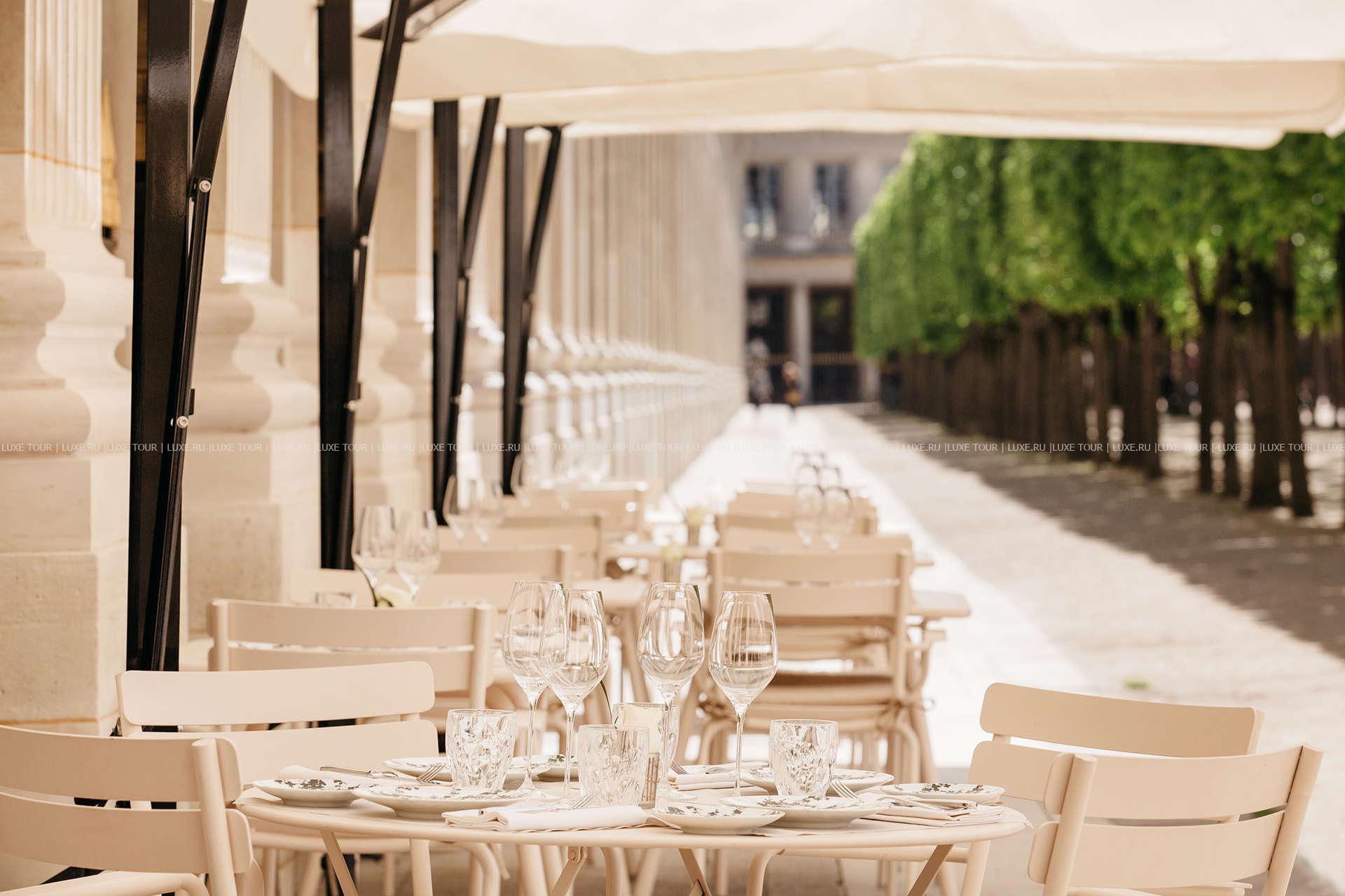 • Гастрономический ресторан Palais Royal, удостоенный 1 звезды Мишлен, представляет современные и аутентичные французские блюда, и располагает летней террасой с видом на парк Пале-Рояль.