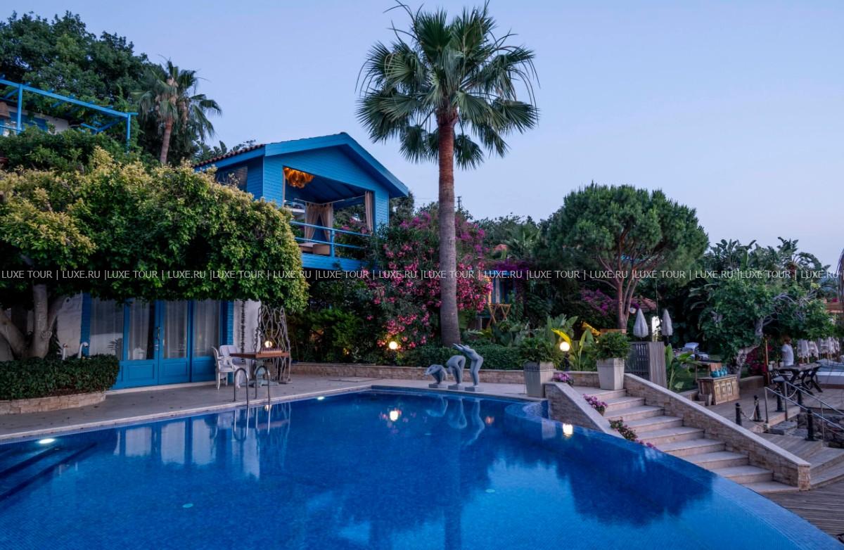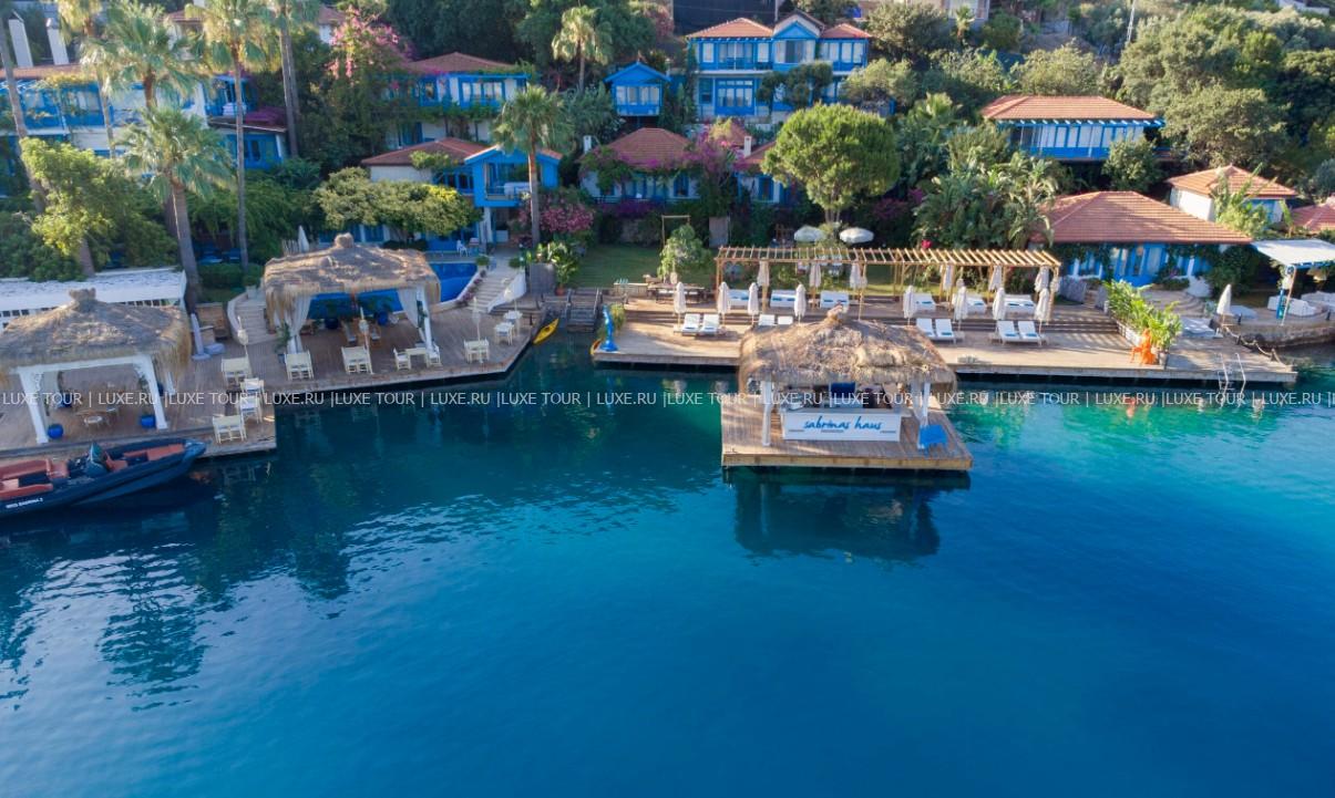 Небольшой очаровательный отель Sabrina’s Haus находится среди благоухающего средиземноморского сада, на самом берегу красивейшей бухты Бозбурун и всего в 20 минутах езды на катере от греческого острова Сими со знаменитым монастырем Панормитис, посвященным Архангелу Михаилу. Благодаря замечательному расположению в отеле отовсюду открывается потрясающий вид на Эгейское море – с балконов изысканно декорированных номеров, из панорамного бассейна и с расположенной над водой террасы ресторана. Sabrina’s Haus предлагает роскошный отдых в уединенной и романтической атмосфере.