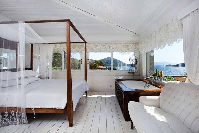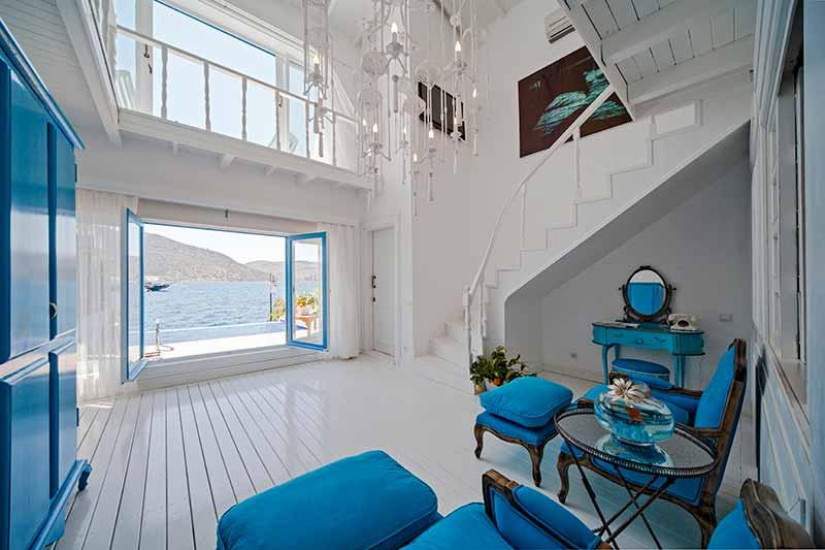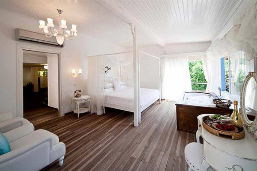 - В отеле 17 номеров различных категорий, включая Luxury Room, Luxury Suite и Signature Suite. Номера выдержаны в бело-голубых тонах и сочетают аутентичный турецкий стиль, средиземноморские мотивы и современный комфорт, а с балконов и террас открывается великолепный вид на тропический сад, бухту Бозбурун и остров Сими.