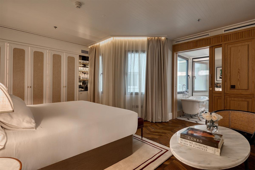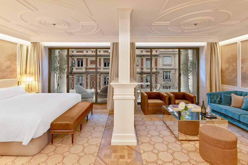 - фешенебельный номер состоит из спальни с кроватью king-size, гостиной с камином и обеденной зоной, гардеробной, ванной комнаты, большой террасы с гидромассажной ванной, обеденной зоной, зоной отдыха и панорамным видом на улицу район Саламанка. Максимальное размещение – 2 взрослых.