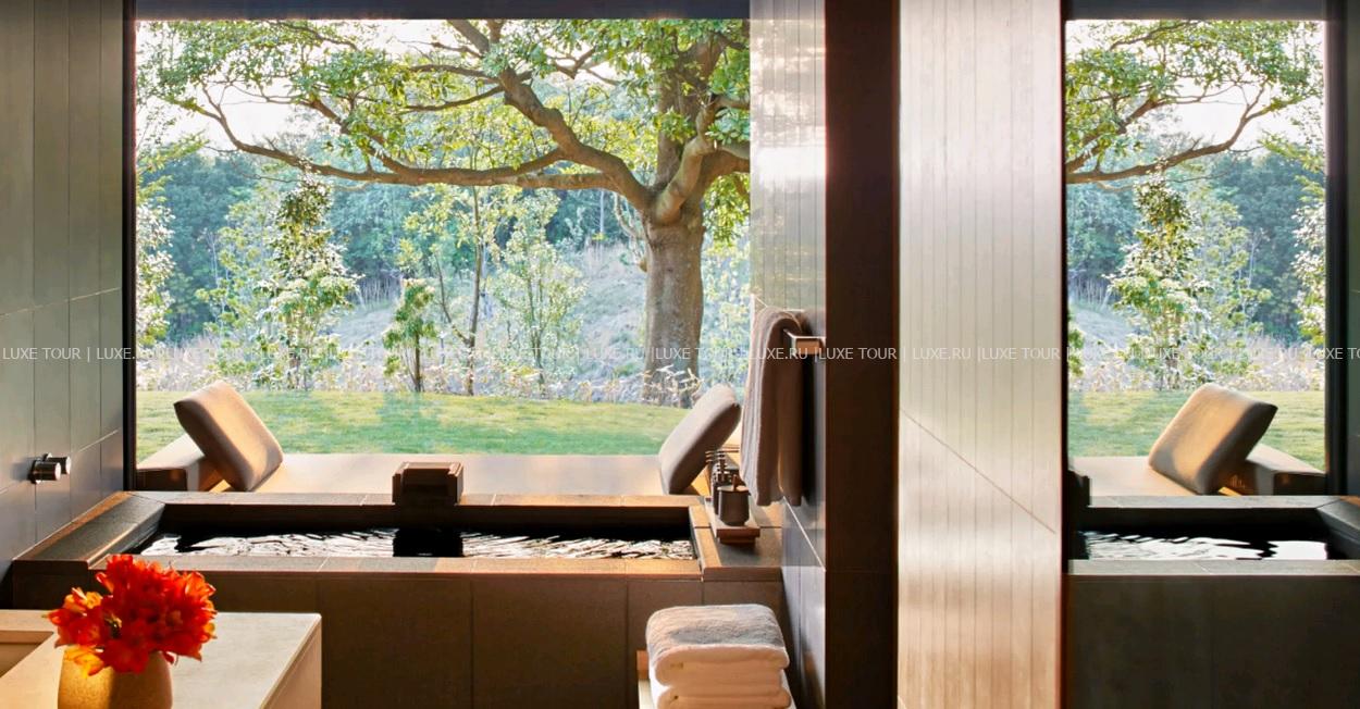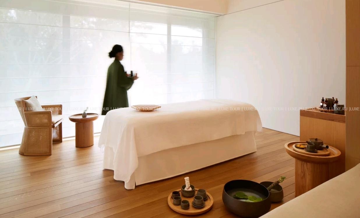 Отель располагает великолепным центром Aman Spa, где на площади 2000 м2 находится: большой природный «онсен» с горячей термальной водой, 2 павильона с «онсенами», наполненными богатой минералами водой из источников, бассейн «ватсу», сауна, парная, салон красоты, фитнес-студия, зона отдыха и 4 процедурных сьюта. В центре предложено разнообразие процедур по уходу за телом и лицом с использованием сезонных местных продуктов, а также специально разработанные индивидуальные программы разной длительности.