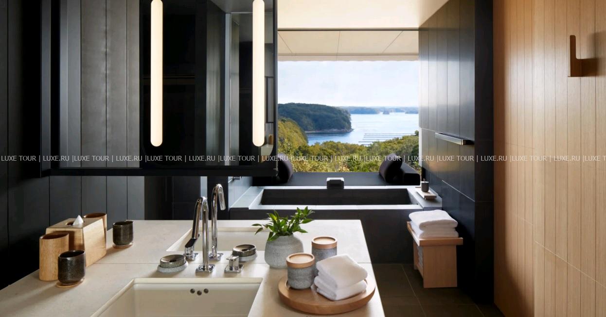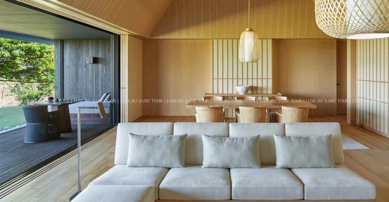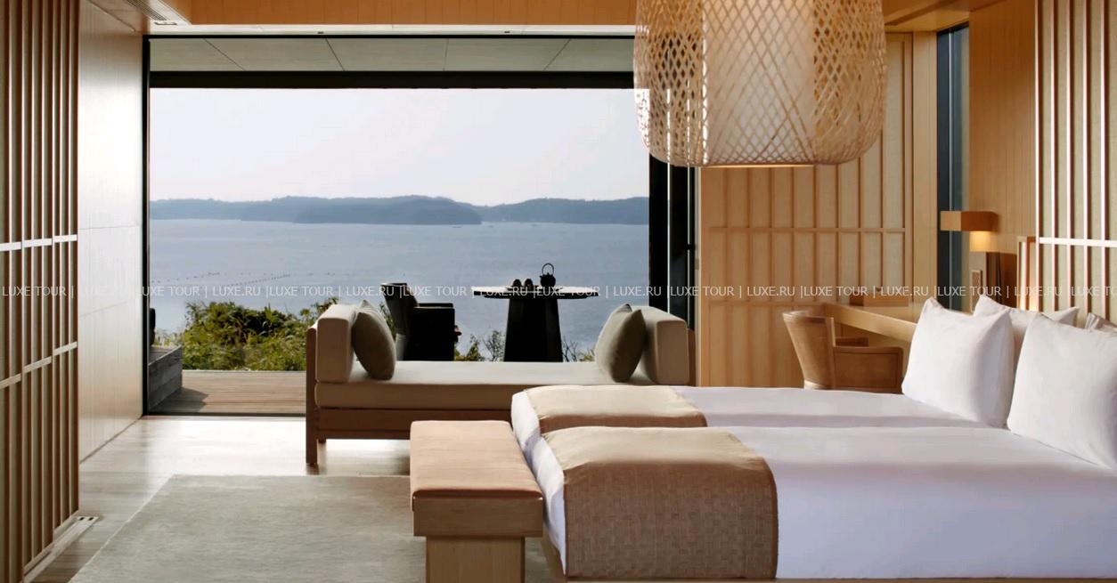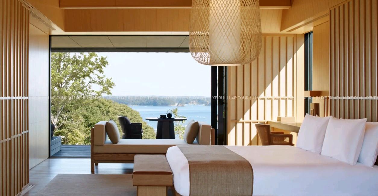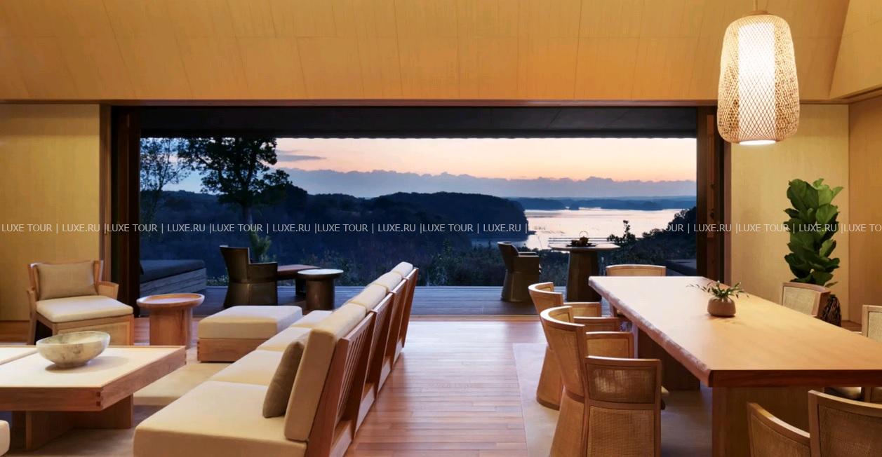 Amanemu, Хонсю находится на склонах высокого холма, спускающегося к живописной бухте Аго, которая уже многие годы известна выращиванием прекрасного жемчуга. Концепция отеля в стиле «риокан» заложена в его названии: amanemu состоит из санскритского aman – «покой, тишина», и японского nemu – «делиться радостью». Элегантные павильоны окружены пышным экзотическим садом с природными термальными источниками, подающими богатую минералами горячую воду в традиционные ванны «онсен» – они имеются не только в великолепном центре Aman Spa, но и во всех номерах и на виллах. Помимо этого к услугам гостей большой панорамный бассейн с видом на бухту, ресторан, предлагающий деликатесы императорского двора, эксклюзивные фитнес-программы и увлекательные экскурсии по окружающему отель Национальному парку Исэ-Сима. Amanemu, Хонсю предлагает полную релаксацию и незабываемый отдых в японских традициях.