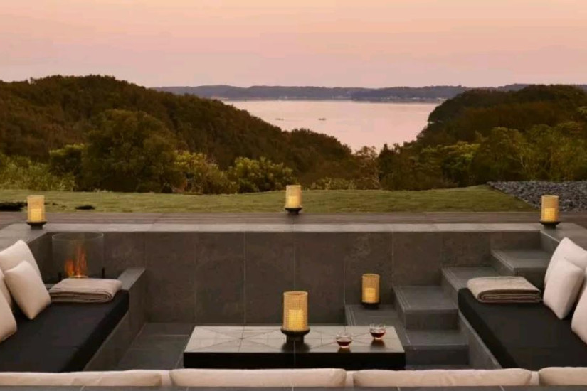 - 366 м2. Состоит из двух спален с кроватью king-size, просторной гостиной с зоной отдыха, обеденной зоной и кухней, двух термальных ванн «онсен» с панорамным видом на бухту, гардеробных, двух ванных комнат с душем, гостевой туалетной комнаты, частного сада, трех веранд с софой, обеденной зоной и панорамным видом на бухту.