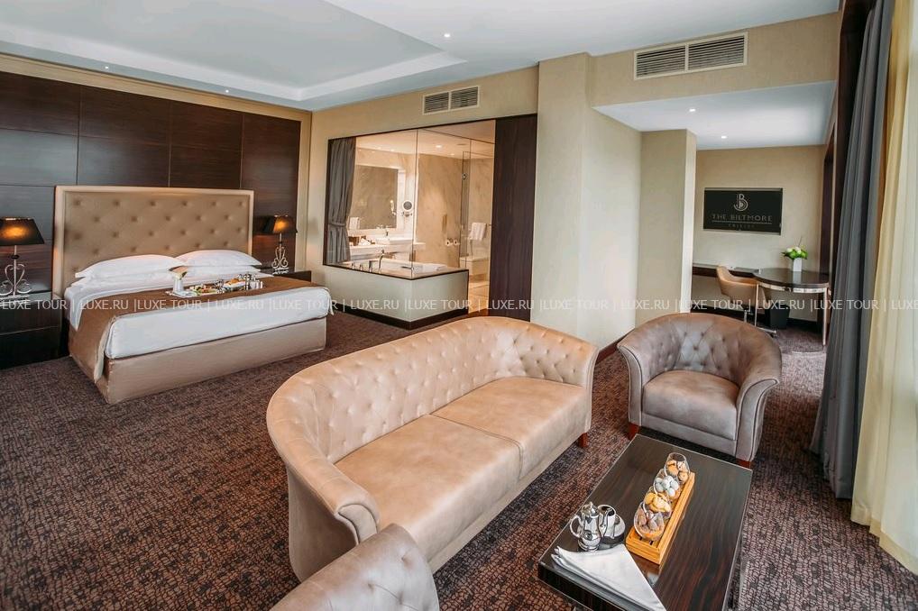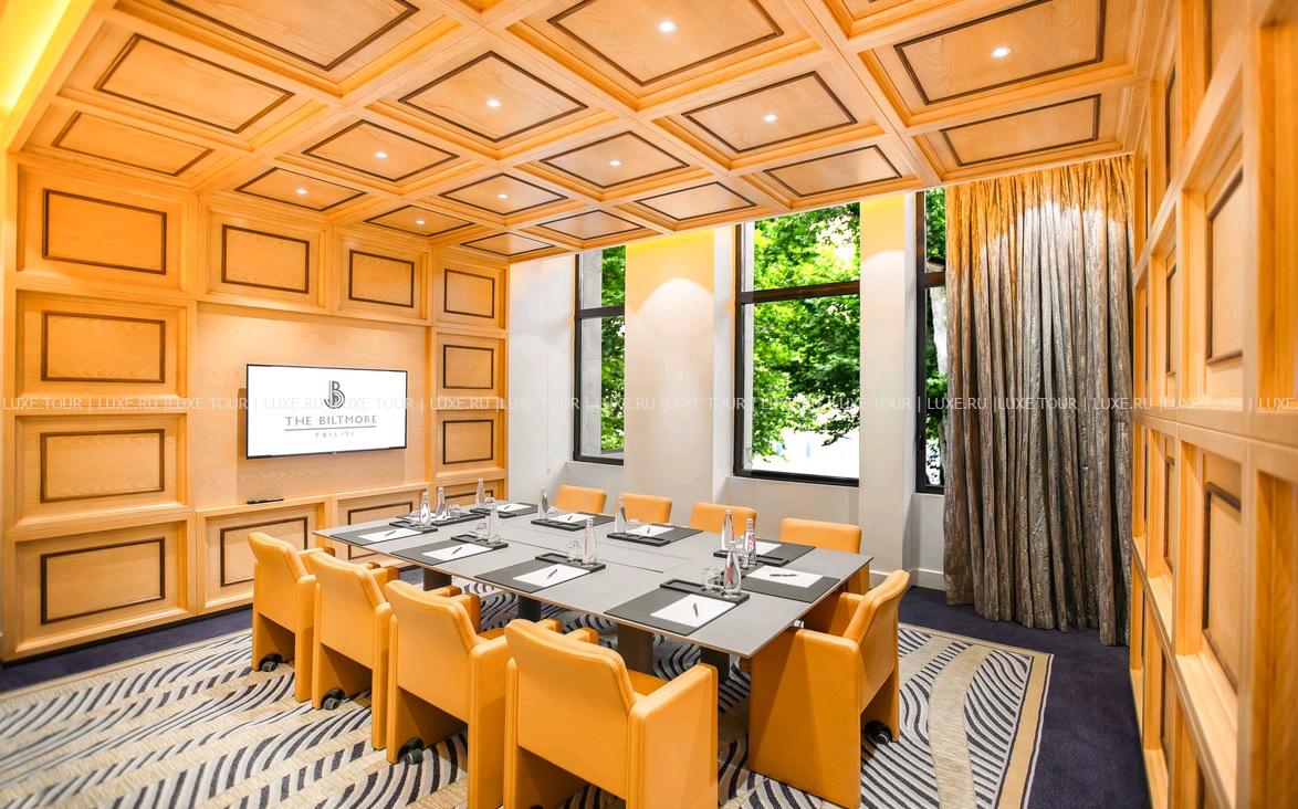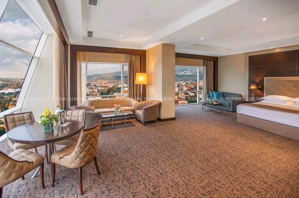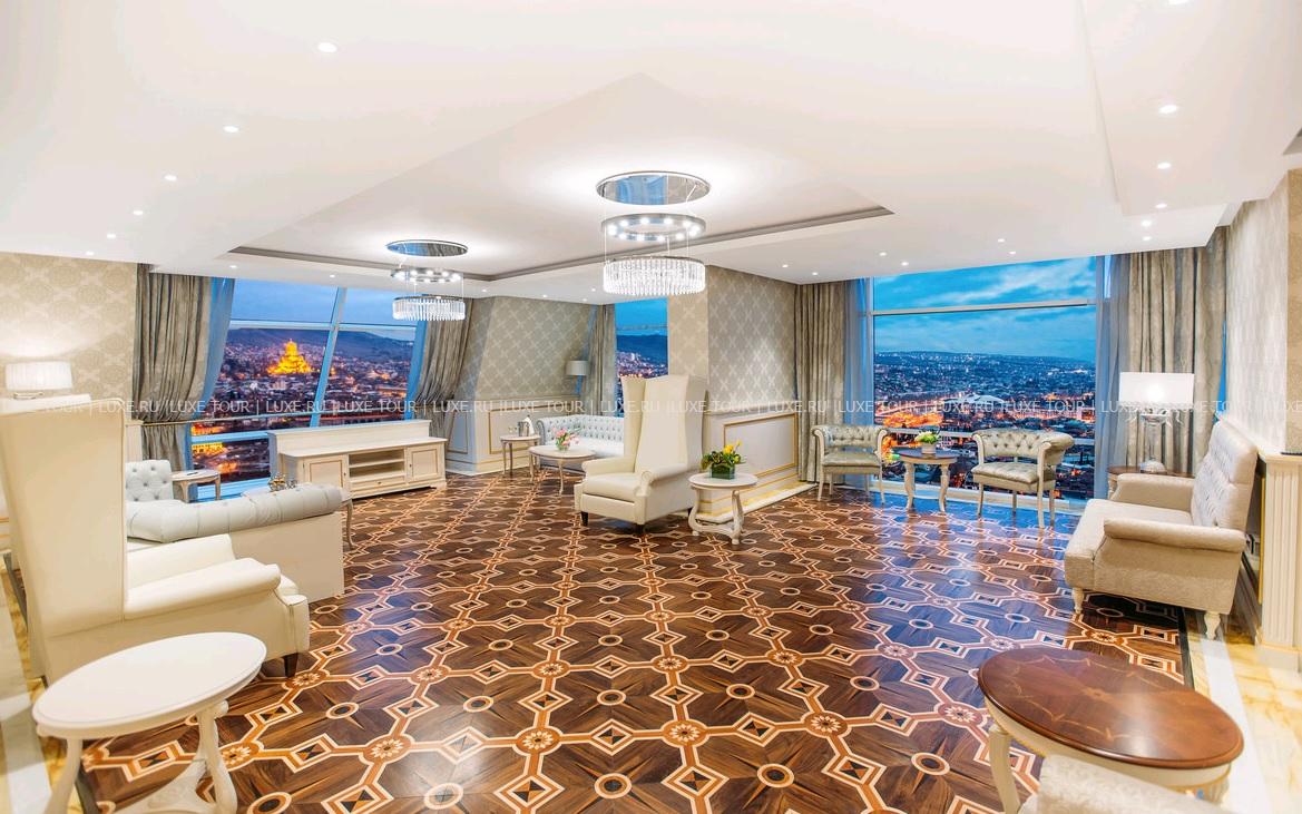 The Biltmore Hotel Tbilisi – самый высокий отель в кавказском регионе, разместившийся в 32-этажном небоскребе в самом сердце Тбилиси. За сверкающим фасадом ультрасовременного здания скрываются элегантные интерьеры, навеянные ностальгией по прошлому: мраморные полы и колонны, хрустальные люстры и зеркала в золоченых рамах. При этом отель предлагает разнообразие первоклассных услуг: комфортабельные номера с потрясающим видом на Тбилиси и Куру, изысканные рестораны и бары, бассейн, Spa и фитнес-центры, а также современно оснащенные конференц-залы и великолепный зал для торжеств, вмещающий до 550 гостей. The Biltmore Hotel Tbilisi – прекрасный отель для деловых и туристических поездок в древнюю столицу Грузии.