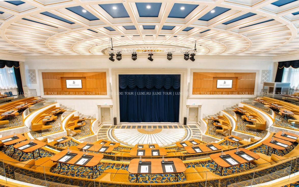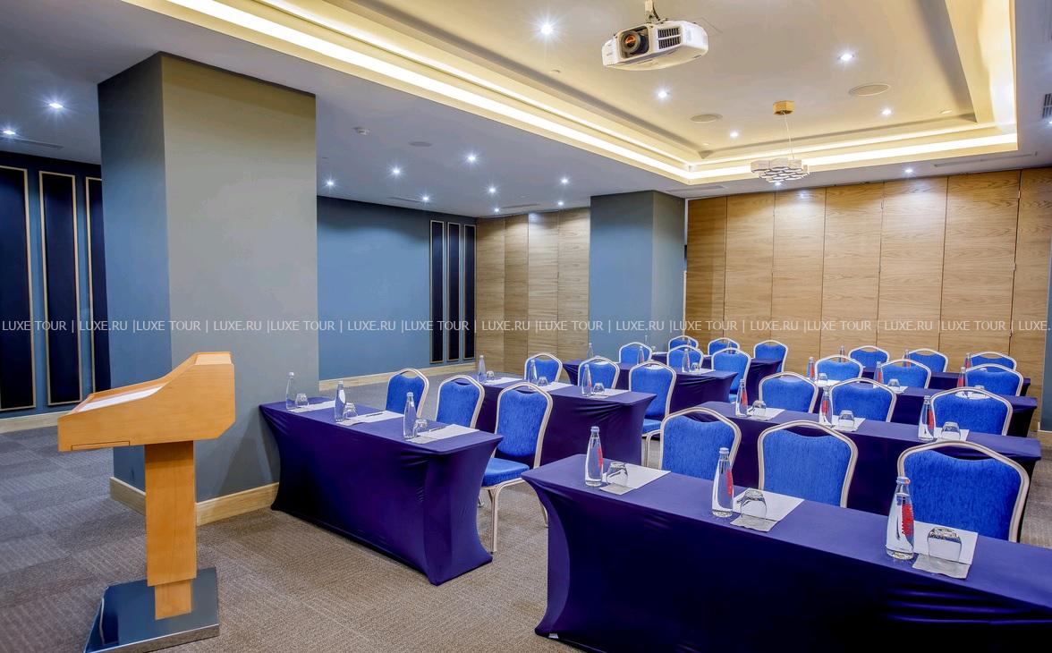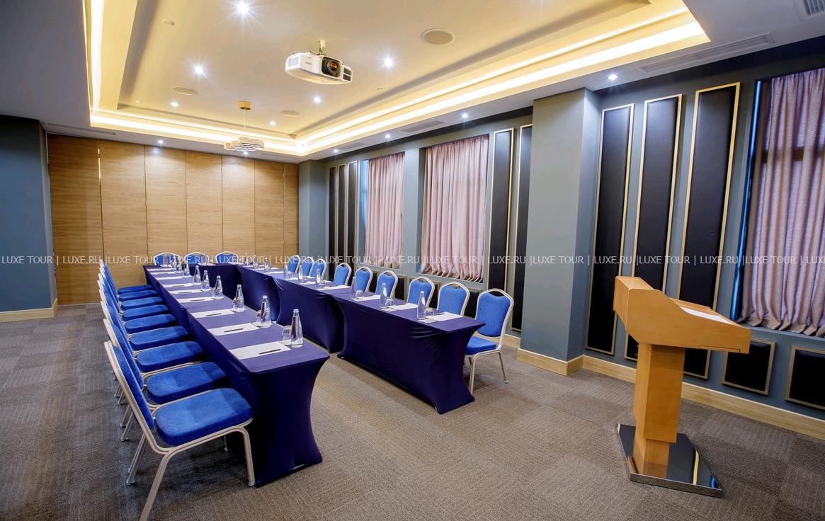 Для гостей – 8 конференц-залов площадью от 30 м2 до 90 м2, роскошный зал для торжеств Grand Royal, вмещающий до 550 человек, аудитория-амфитеатр на 170 мест, бизнес-центр, Wi-Fi, парковка, услуги консьержа, услуги прачечной и химчистки.