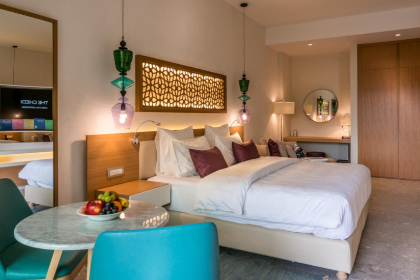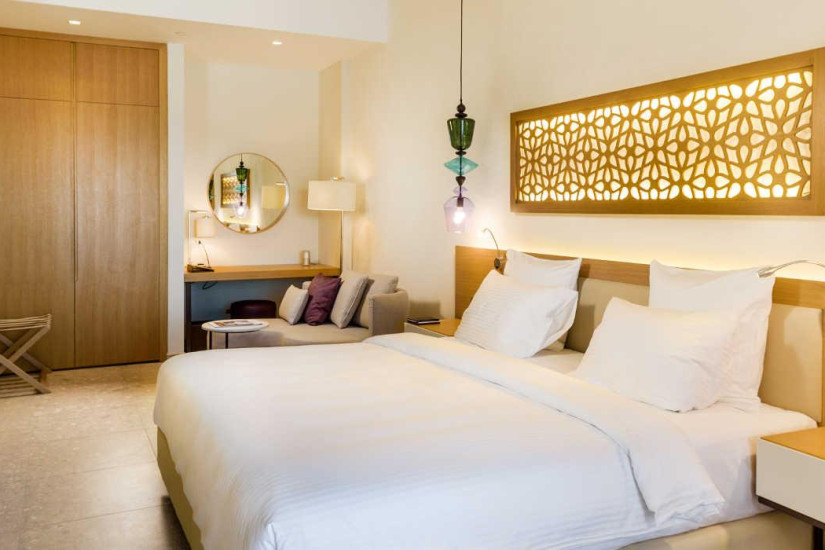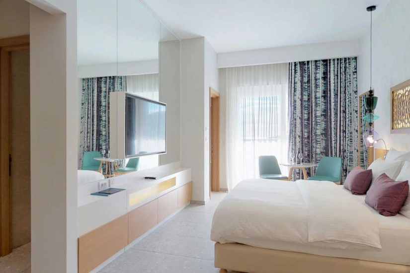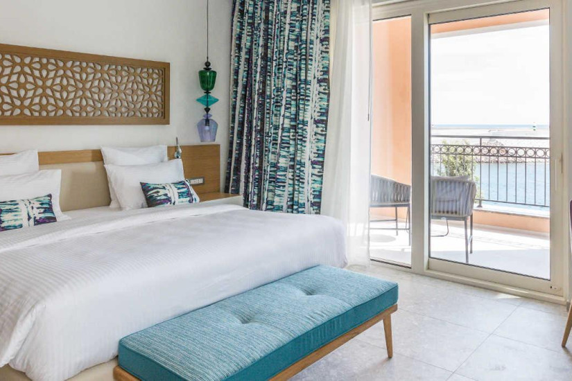 - 44 м2. Состоит из спальни с кроватью king-size или двумя кроватями twin и рабочей зоной, ванной комнаты с ливневым душем, балкона с видом на море. Максимальное размещение – 3 взрослых или 2 взрослых + 1 ребенок.