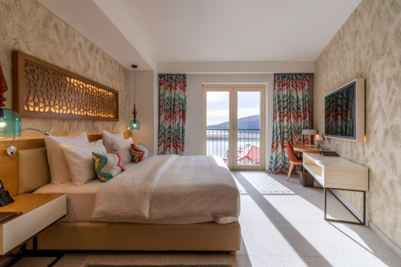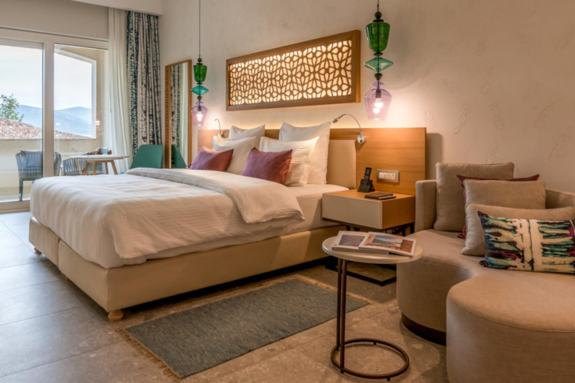 - В отеле 111 номеров различных категорий, включая 24 Superior Rooms, 21 Deluxe Rooms, 12 Grand Superior Rooms, 4 Grand Poolside Rooms, 39 Grand Deluxe Rooms, 3 Junior Suites, 3 Deluxe Suites, 1 Grand Deluxe Suite, 3 Grand Deluxe Corner Suites и 1 Luštica Bay Penthouse. Комфортабельные номера располагаются в двух зданиях и декорированы в оригинальном современном стиле, навеянном средиземноморскими мотивами, а из панорамных, во всю стену окон и с балконов открывается великолепный вид на Адриатическое море, живописный залив Траште и величественные горы.