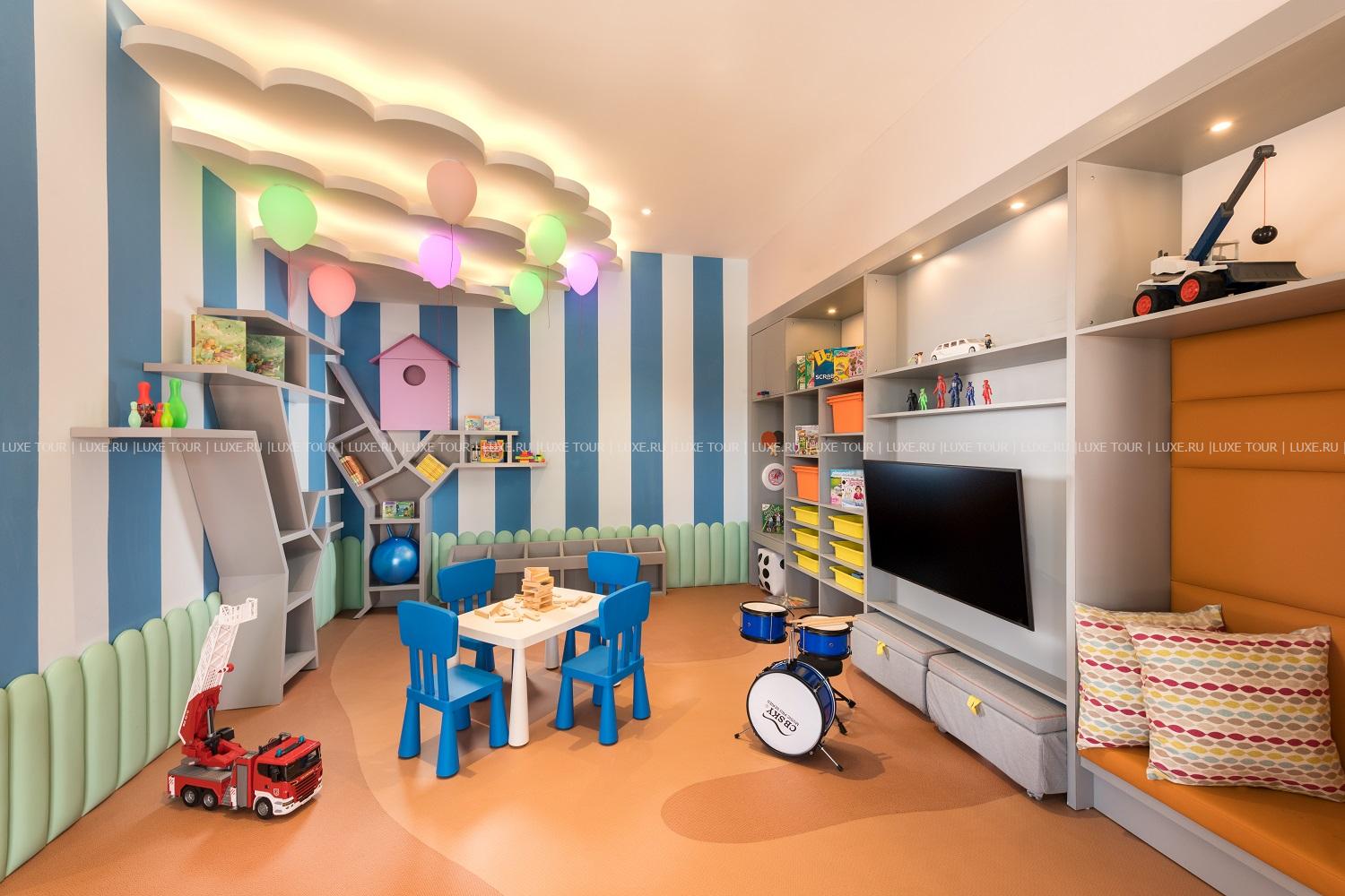 В отеле работает детский клуб, имеется детская зона в бассейне, предусмотрены удобства для проживания с детьми, детское меню в ресторанах и Spa-центре. Также возможны услуги няни (по запросу).
