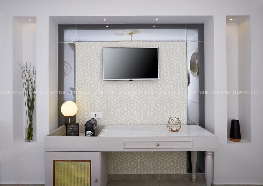 Для гостей – большой конференц-зал, бесплатный Wi-Fi, бизнес-сервис, бесплатная парковка, бесплатный шаттл в центр Фиры, услуги консьержа, услуги прачечной.