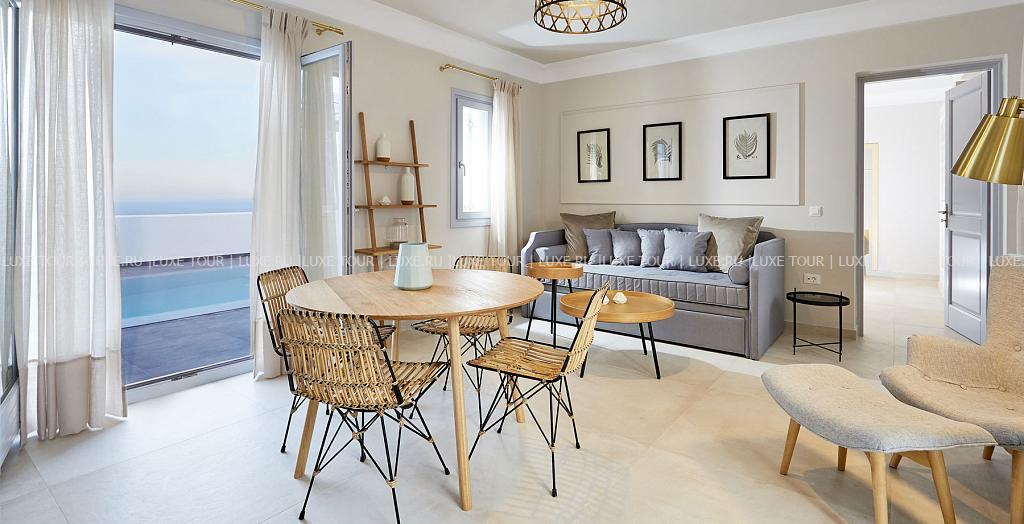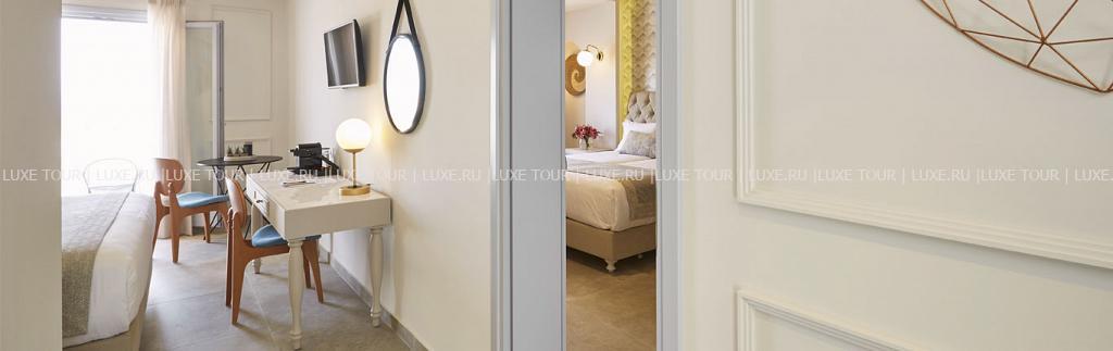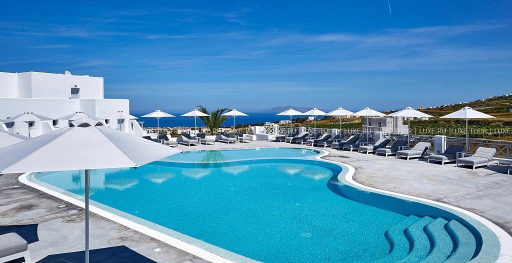 De Sol Spa Hotel Santorini – современный фешенебельный отель, круглый год предлагающий своим гостям весь спектр первоклассных услуг: от шикарных номеров, бассейна с панорамным видом на море, ресторана с изысканной кухней и уютных баров до великолепного Spa-центра и развлечений для детей. De Sol Spa Hotel Santorini – прекрасный выбор для романтического и семейного отдыха на сказочном острове Санторини.