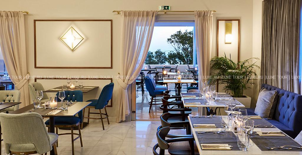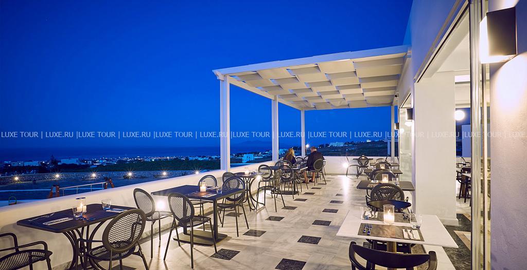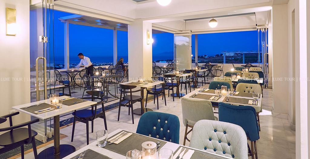 • Элегантный ресторан с открытой террасой и панорамным видом на кальдеру и море предлагает изысканные блюда средиземноморской, греческой и региональной кухни.