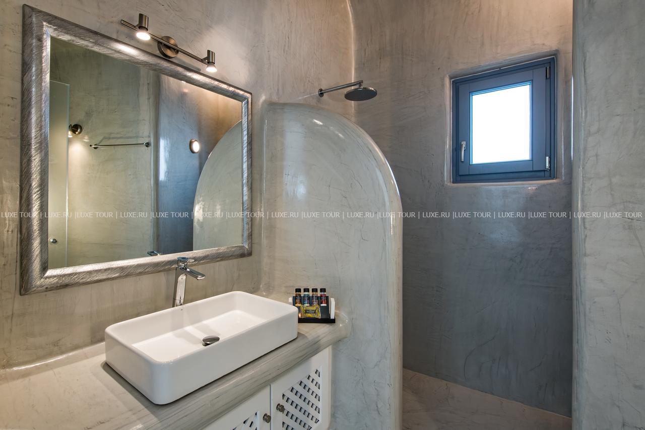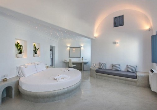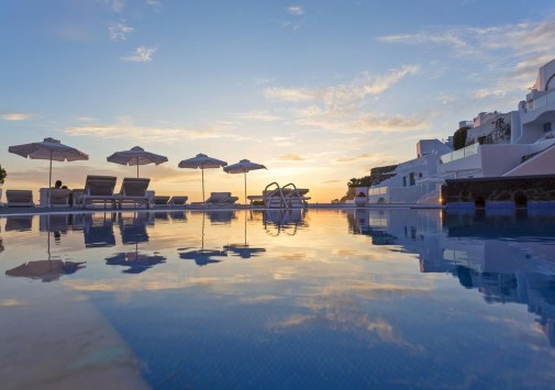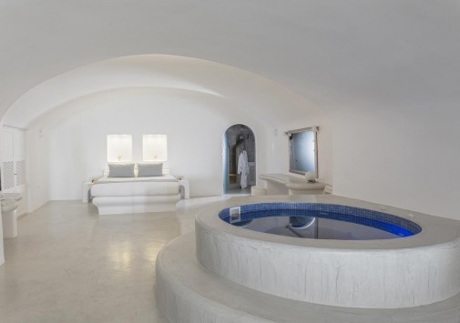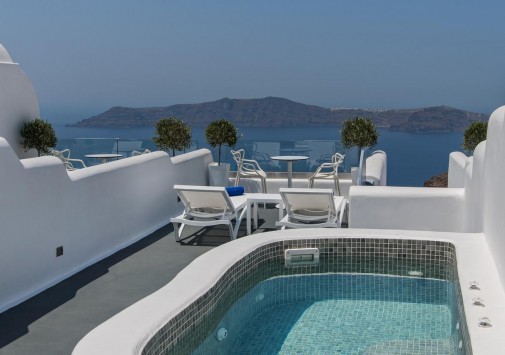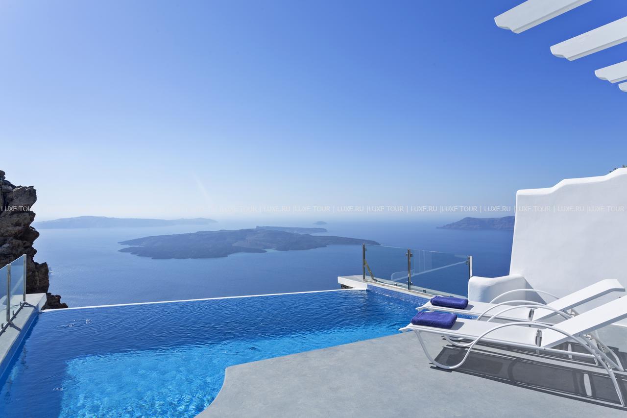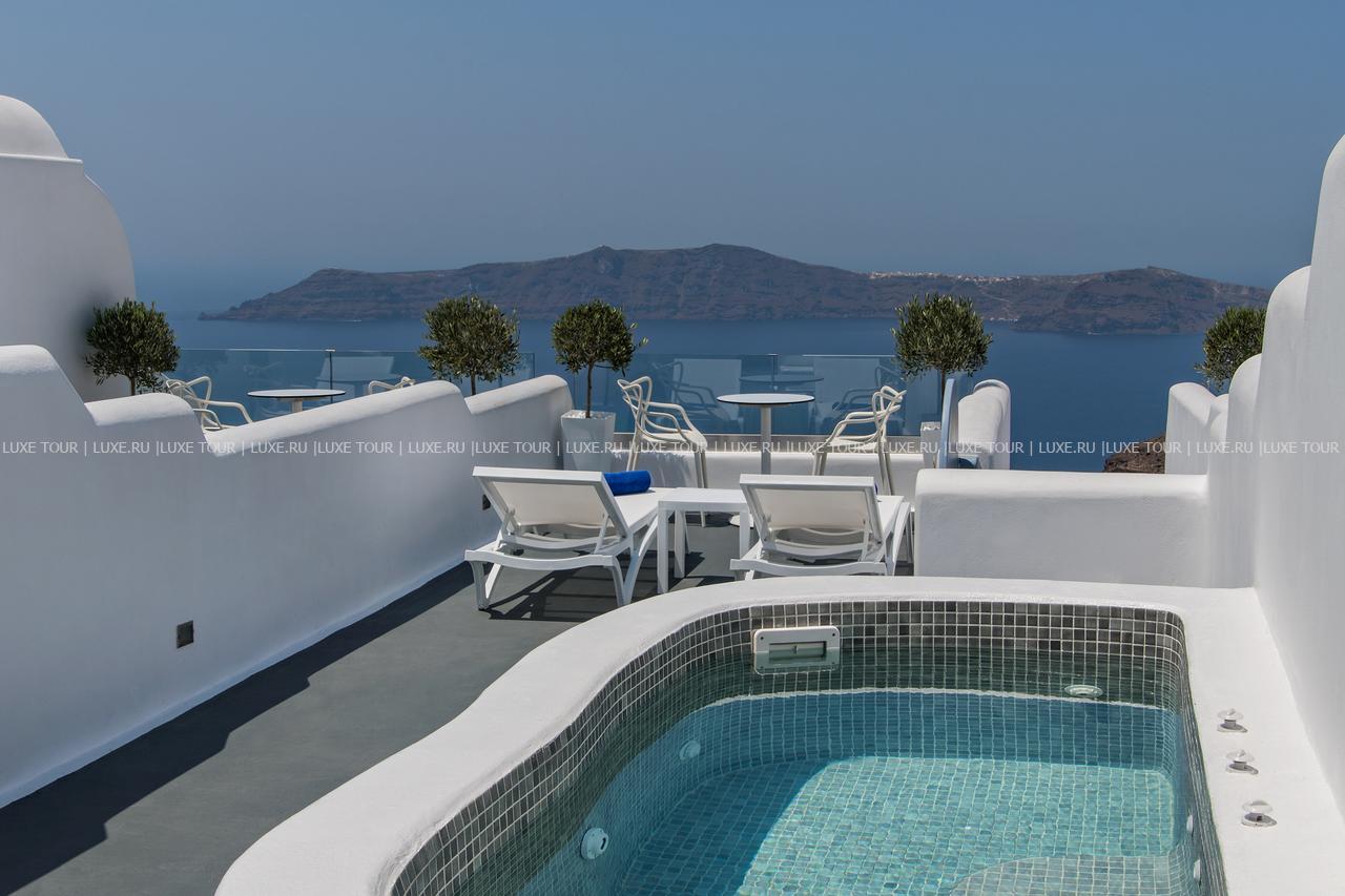 В отеле есть крытый подогреваемый бассейн и открытый подогреваемый бассейн с панорамным видом на кальдеру.