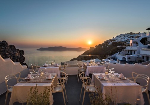 • Гастрономический ресторан Under the Stars с террасой и великолепным видом на кальдеру предлагает деликатесы греческой кухни, приготовленные из свежих местных продуктов.