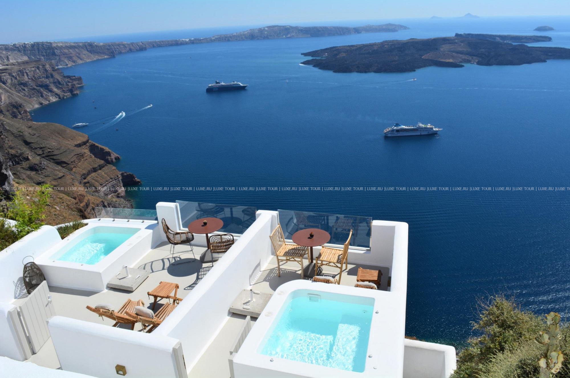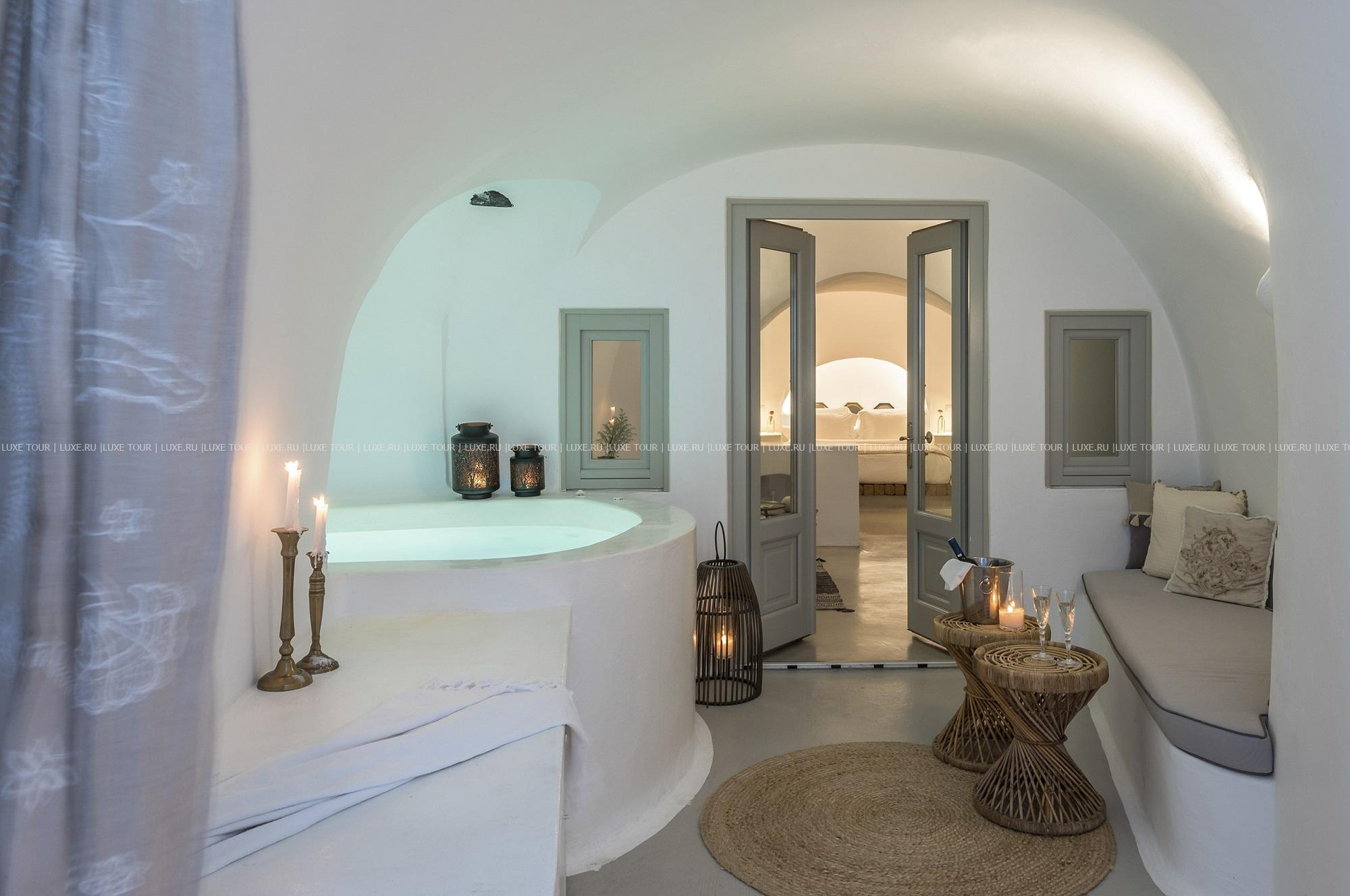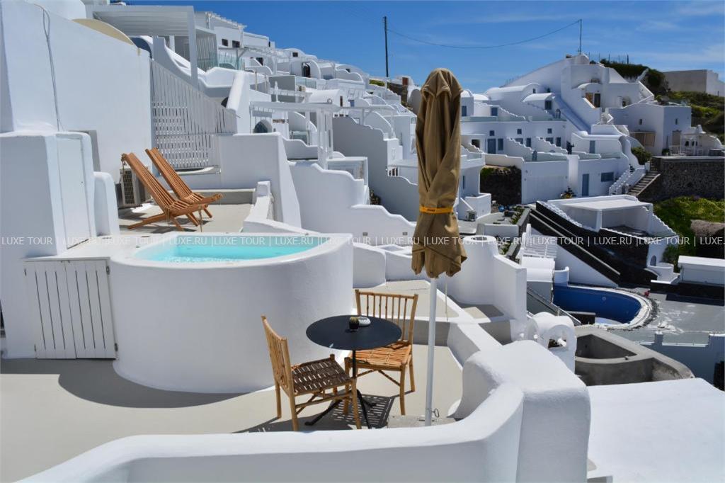 Cocoon Suites Santorini – очаровательный отель, словно высеченный из белоснежного камня на вершине скалы, откуда открывается захватывающий вид на бирюзовое Эгейское море, кальдеру и вулкан. В отеле всего девять номеров – все категории Suite, с оригинальным дизайном в традиционном стиле Санторини и балконами с гидромассажными ваннами и панорамным видом на море. Также гостей ждут ужины при свечах и изысканная кухня, прогулки на яхте и дегустации вин, спа-процедуры и другие услуги класса «люкс». Cocoon Suites Santorini предлагает эксклюзивный сервис и роскошный романтический отдых на Санторини.