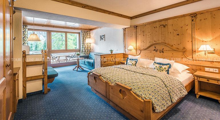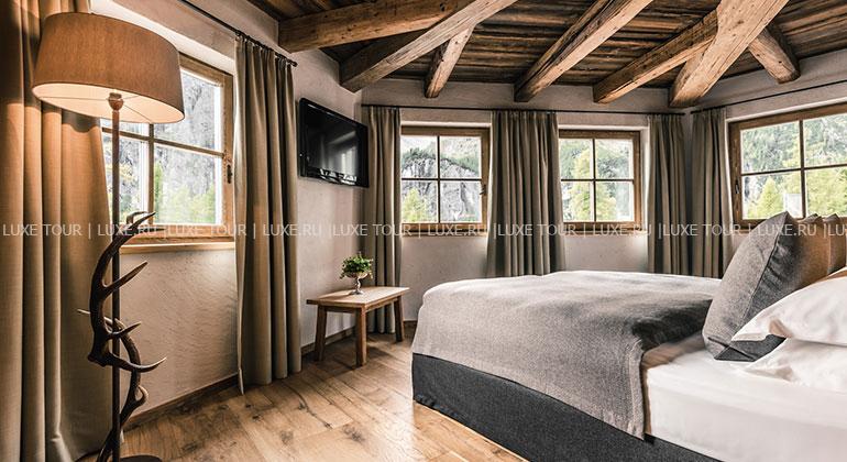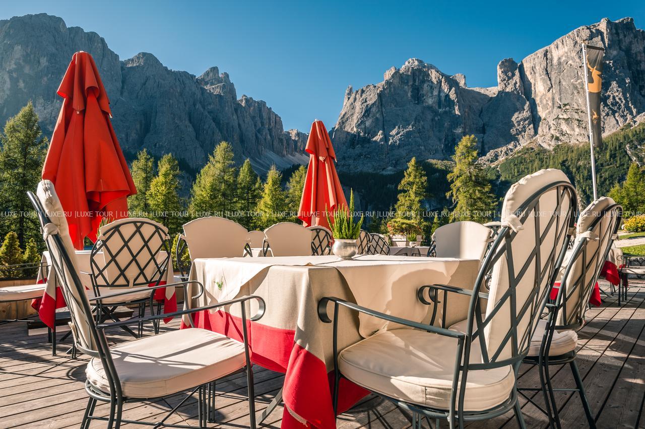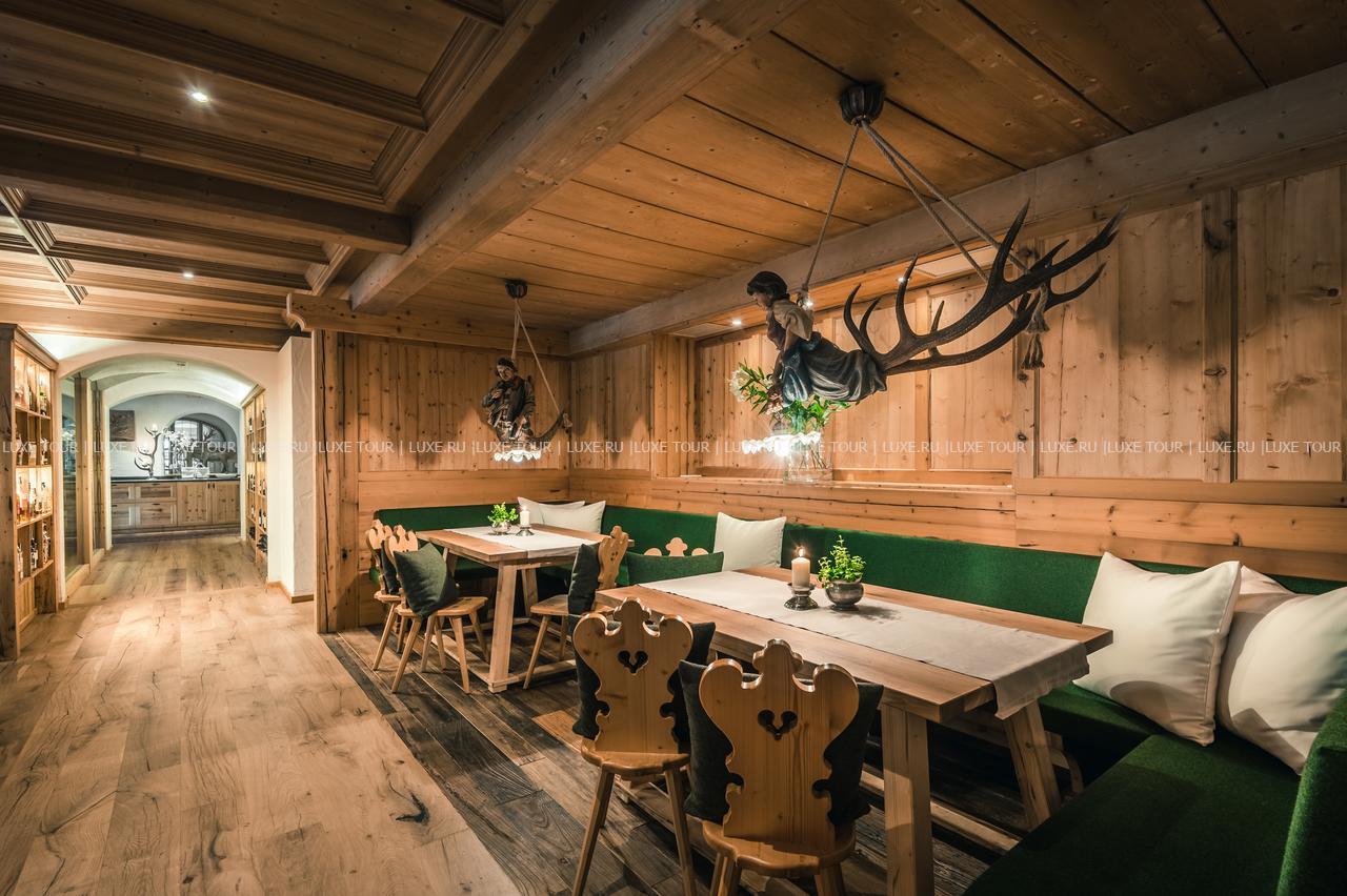 - Элегантный ресторан Luis Trenker Stube с панорамным видом на Доломитовые Альпы предлагает деликатесы тирольской кухни.