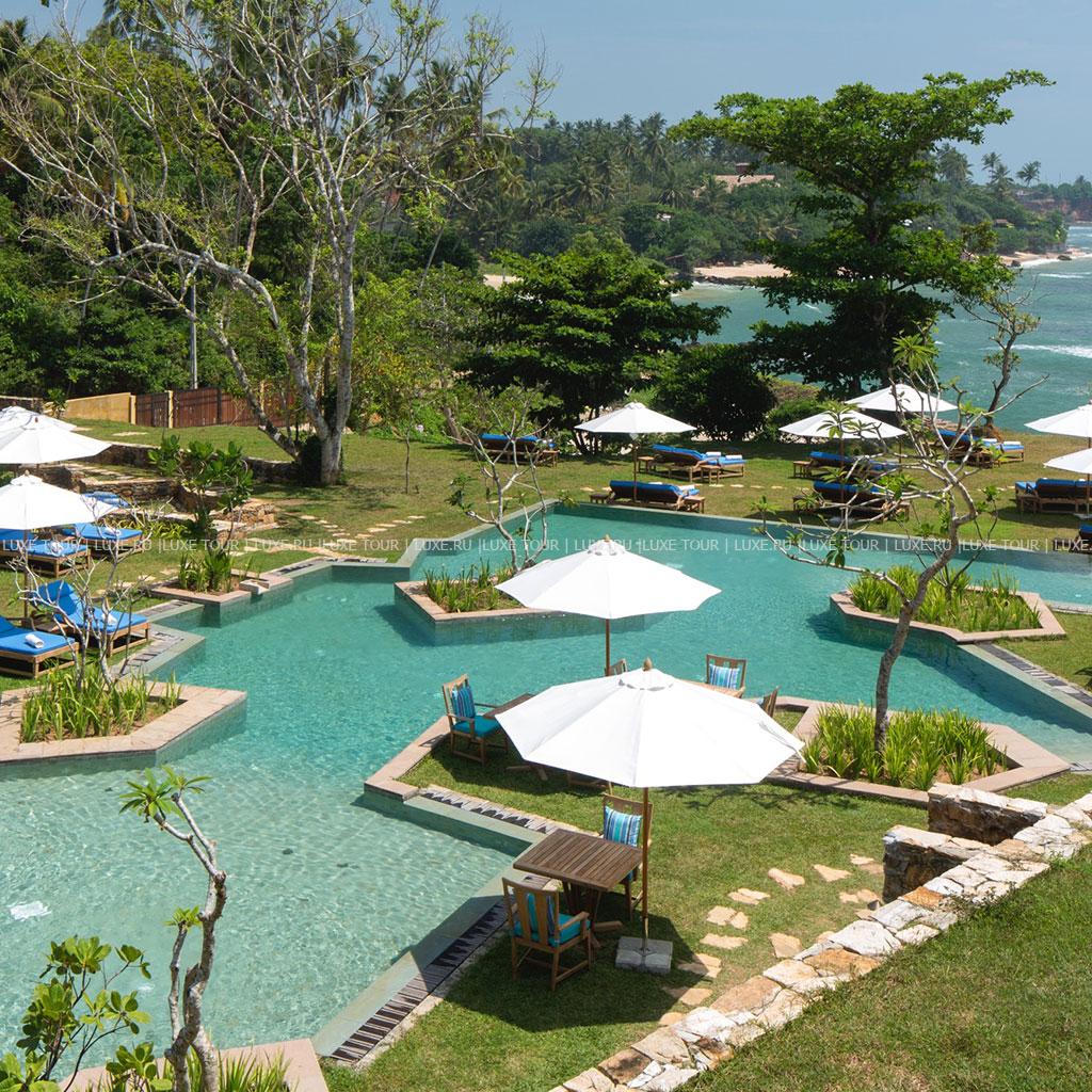 Cape Weligama раскинулся на 5 гектарах чудесных ландшафтных садов с экзотическими растениями и тенистыми пальмами, на вершине 40-метровой скалы, спускающейся к живописным пляжам и теплым водам Индийского океана. Отель построен в стиле традиционной шриланкийской деревни, входит в престижную международную ассоциацию Relais & Chateaux и предлагает гостям разнообразие современных услуг. Просторные и комфортабельные сьюты и виллы с верандами и бассейнами, рестораны и бары с видом на океан, Spa и фитнес-центры, детский клуб и масса развлечений на любой вкус – от потрясающего дайвинга и глубоководной рыбалки до наблюдения за китами. Cape Weligama – оазис роскоши в сказочно красивом уголке Шри-Ланки.