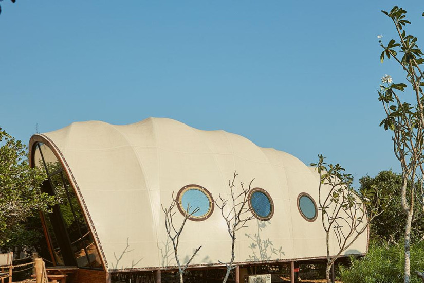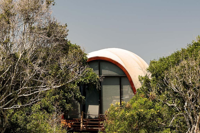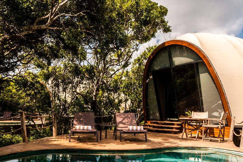 - 75 м2. Состоит из шатра Cocoon Suite и расположенного рядом шатра-спальни для детей Urchin с двумя односпальными кроватями и туалетной комнатой.