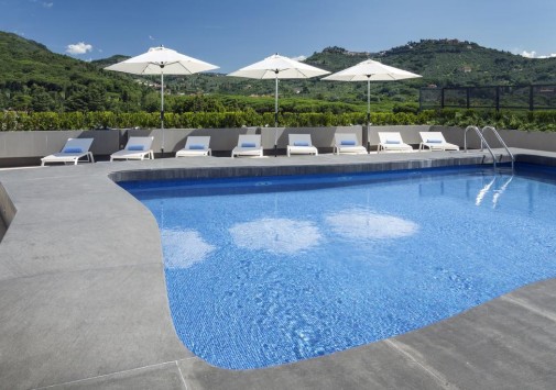 На крыше отеля находится открытый бассейн с панорамным видом на курорт и терраса-солярий с шезлонгами.