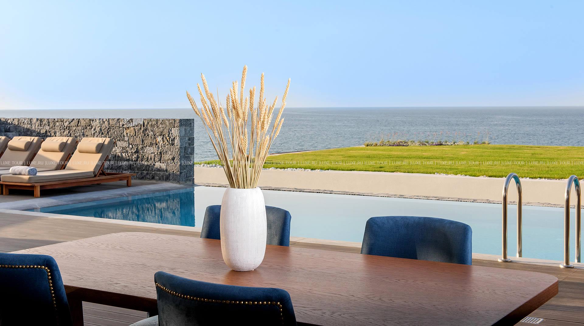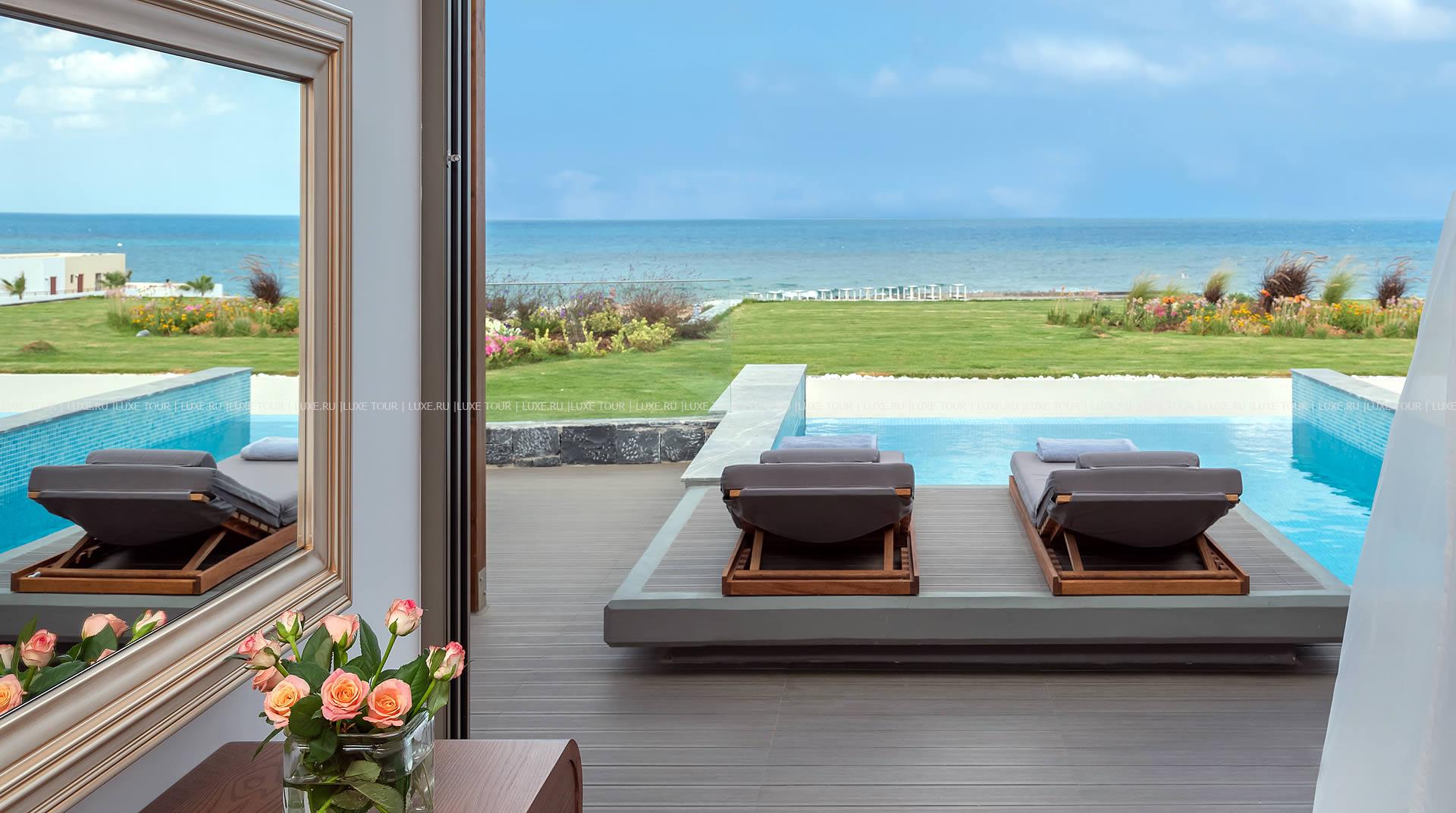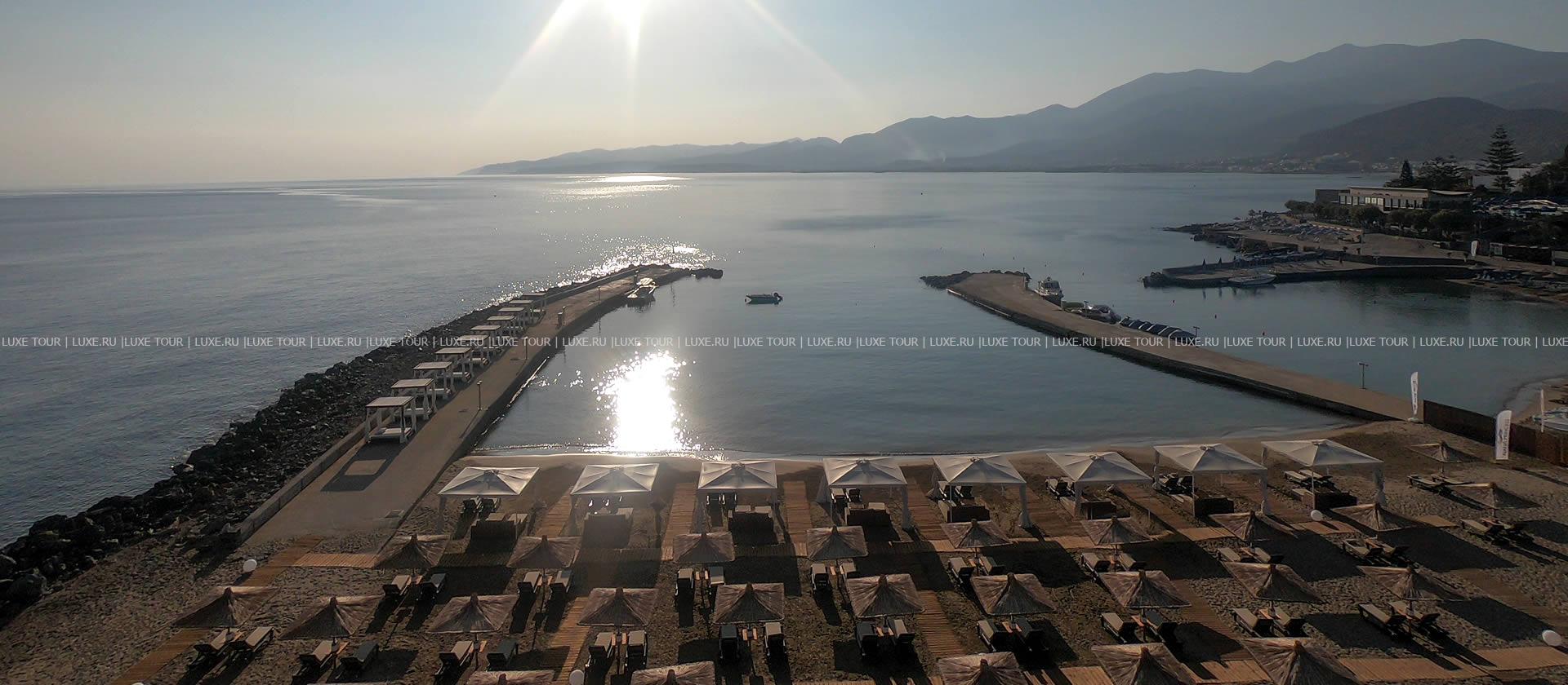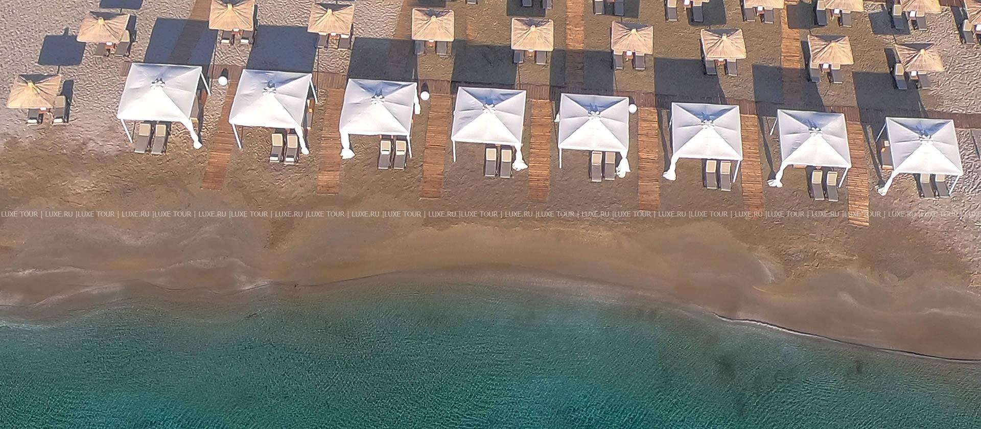 Отель располагает частным оборудованным пляжем.
