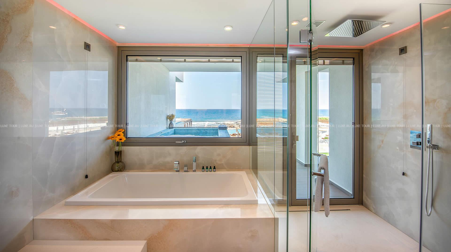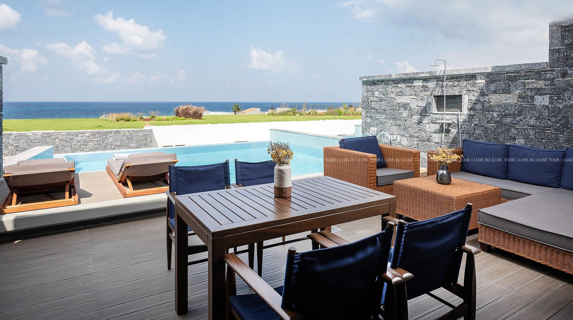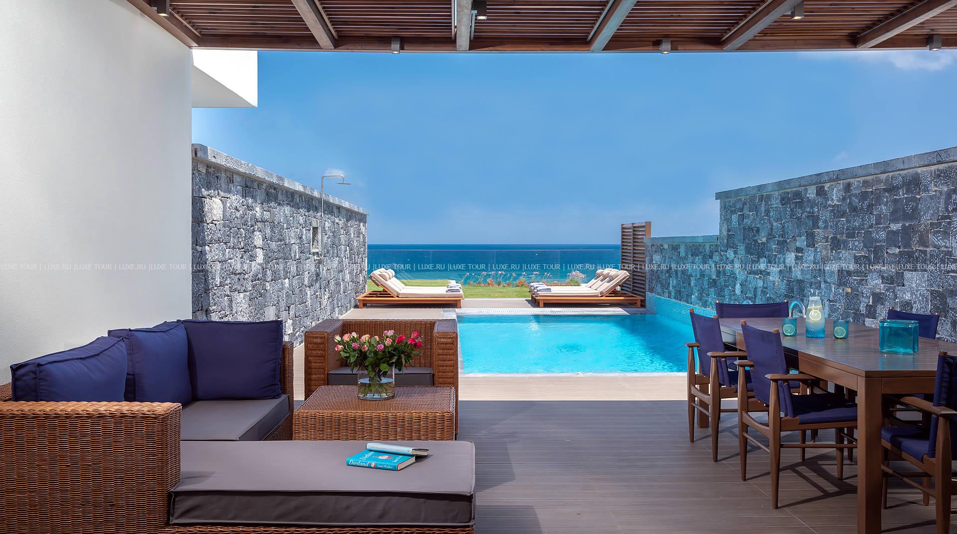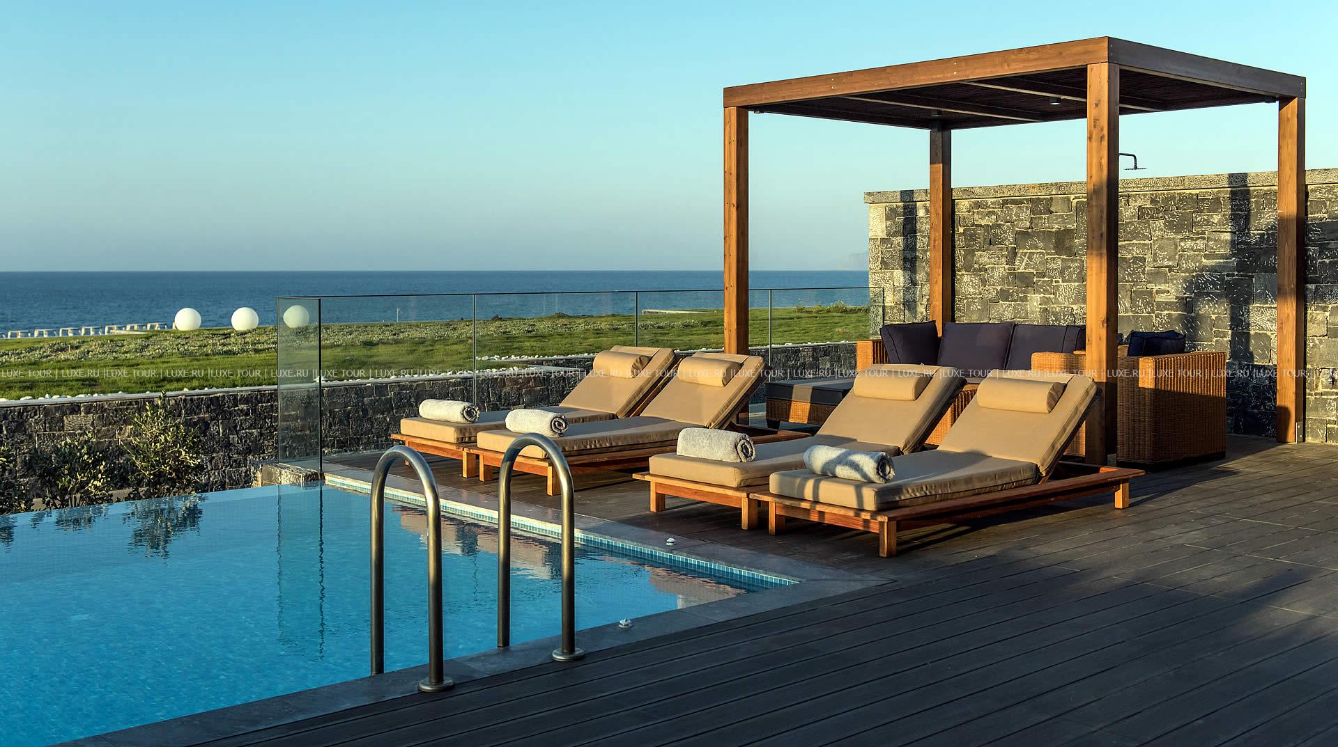 Отель располагает частным оборудованным пляжем.
