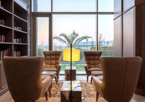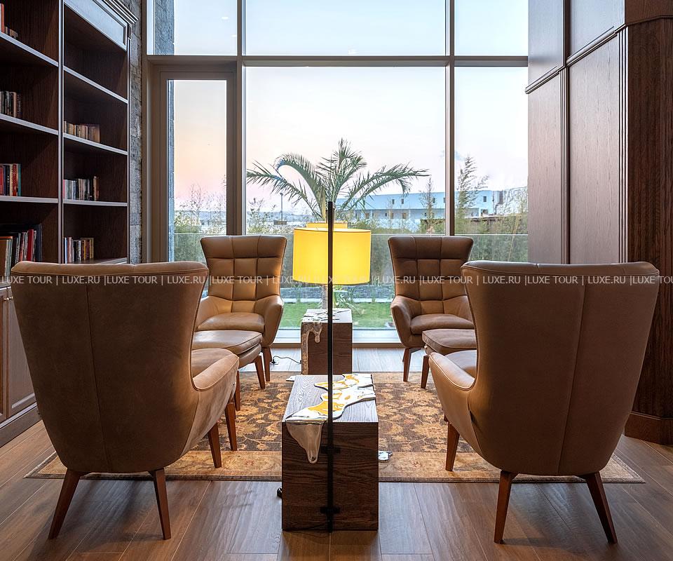 • В уютной библиотеке можно отдохнуть за напитком, почитать интересную книгу и послушать живую музыку.