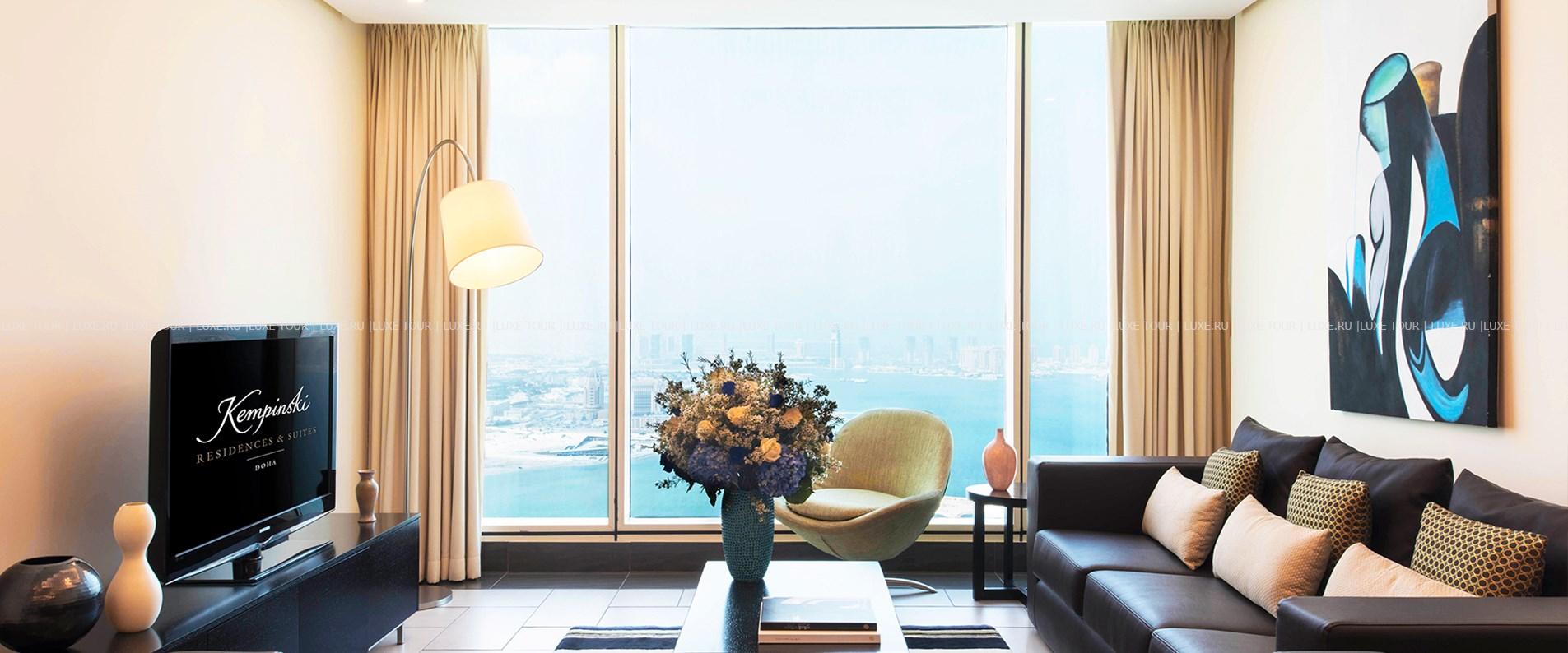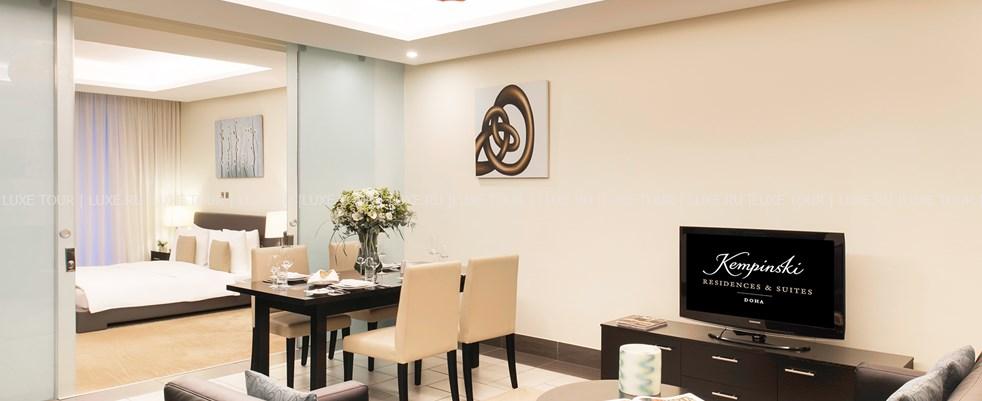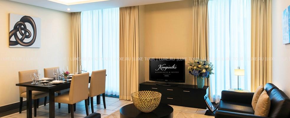 Kempinski Residences & Suites, Доха расположен в небоскребе в центре делового района Уэст-Бэй, рядом с торговым центром City Centre Mall, в нескольких минутах ходьбы от набережной Аль-Корниш, в 10 минутах езды от рукотворного острова Жемчужина и в 25 минутах езды от международного аэропорта Хамад.