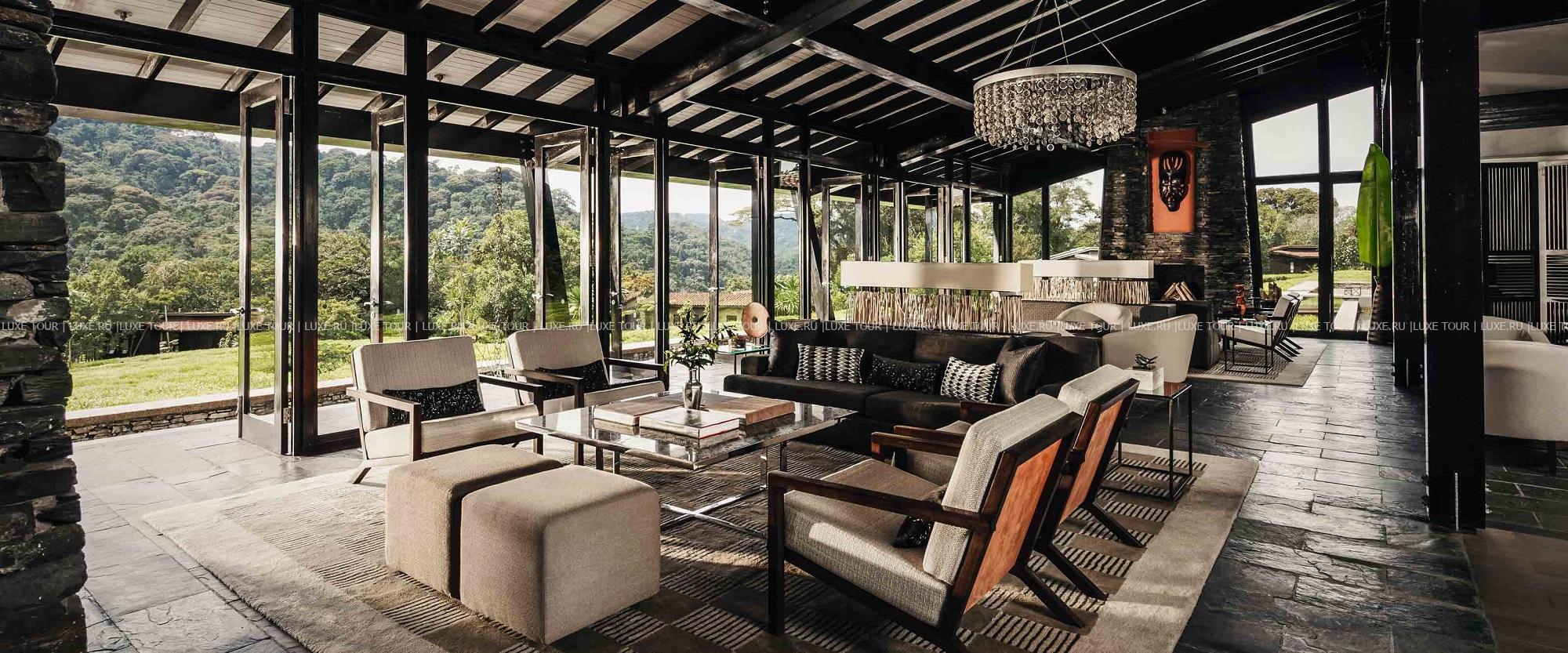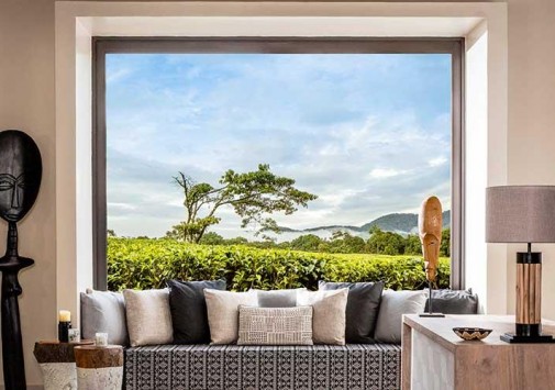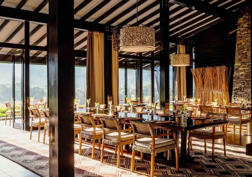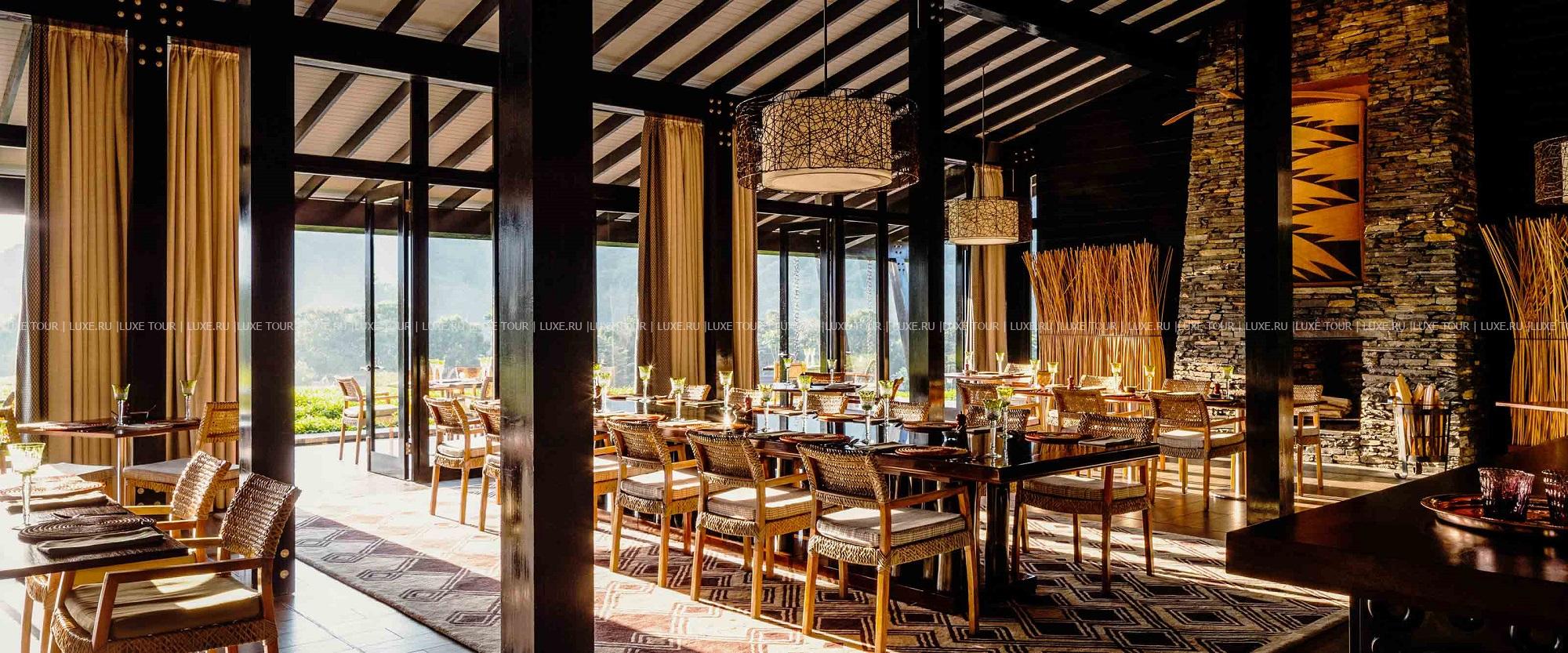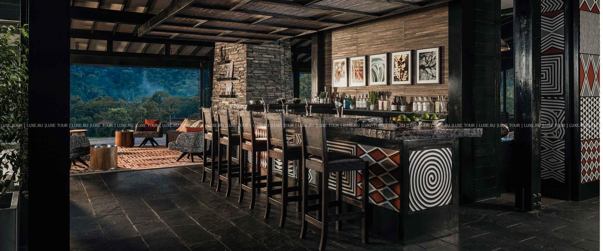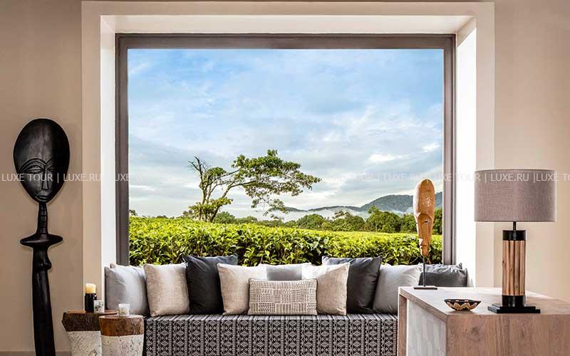 - Элегантный ресторан с декором в традициях Руанды, большим камином и террасой с потрясающим видом на чайные плантации и горы предлагает местную кухню и органические блюда, приготовленные из продуктов с фермы отеля.