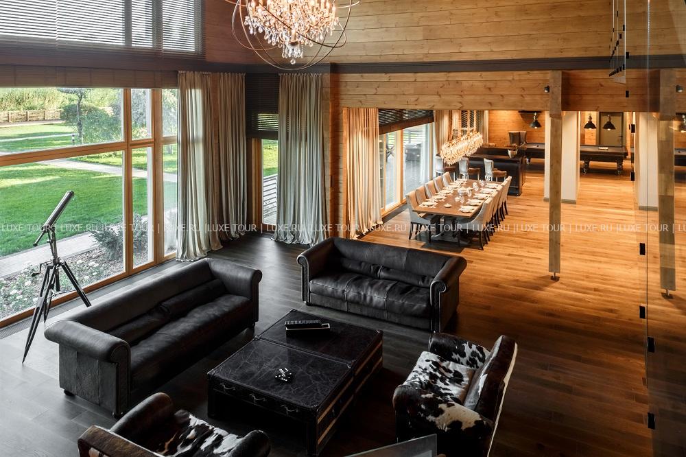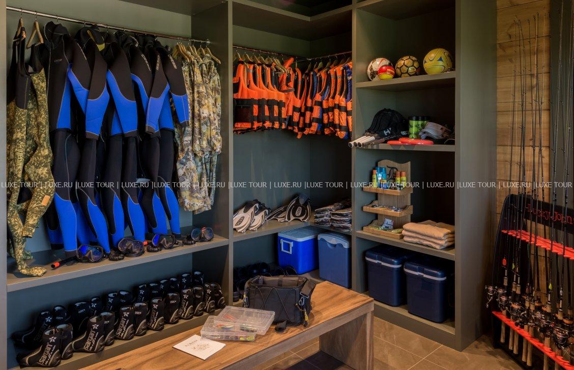 Для гостей – рыбацкая гардеробная, сушильная комната, комната для хранения снаряжения для рыбалки, причал, скоростные катера, услуги профессионального егеря.