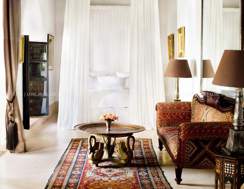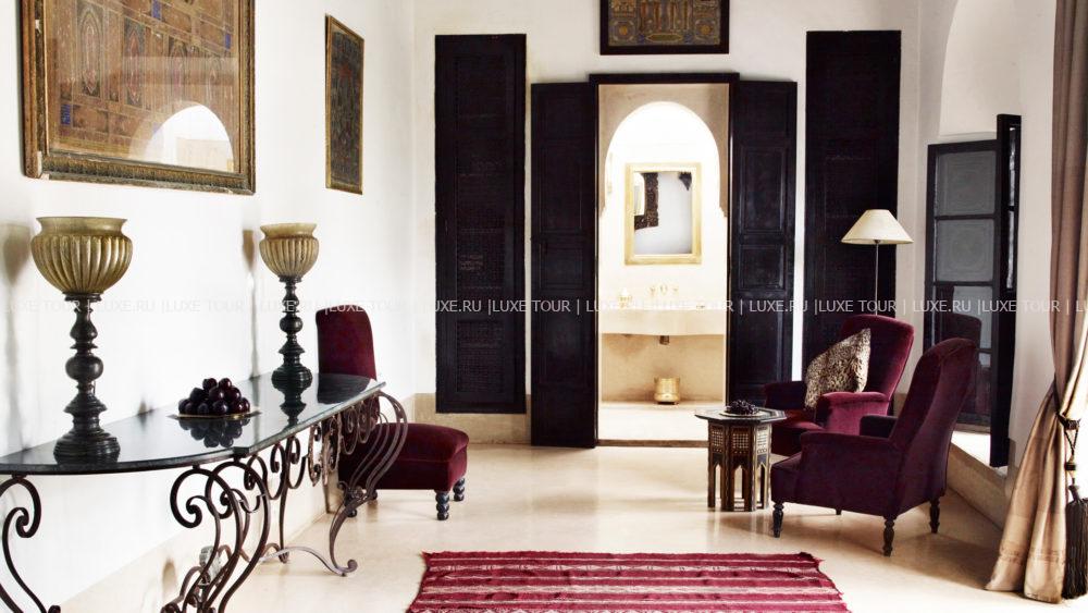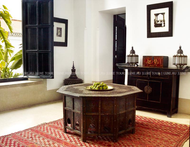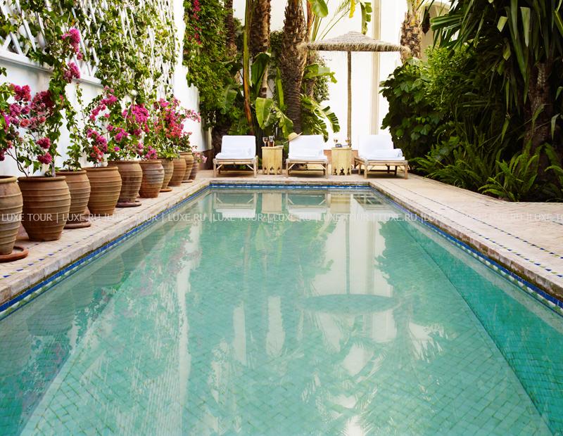 L' Hotel Marrakech находится в самом сердце Медины – «красного города», включенного в список Всемирного наследия ЮНЕСКО. Риад XIX века, который когда-то являлся центральной частью дворца, сегодня приобрел знаменитый британский дизайнер Джаспер Конран и превратил его в отель, где восточная роскошь сочетается с элегантным стилем 1930-годов и современным комфортом. Здесь всего пять номеров Suite, каждый из которых впечатляет великолепным убранством в марокканских традициях: антикварная мебель, дорогой текстиль, артефакты и предметы искусства из частных коллекций Конрана и Ив Сен Лорана. Во внутреннем дворе расположен благоухающий сад с бассейном, а в уютном обеденном зале с камином и на утопающей в зелени террасе с панорамным видом на древний Марракеш и Атласские горы можно насладиться изысканными местными блюдами. L' Hotel Marrakech – эксклюзивный отель с аутентичной атмосферой старинного марокканского риада.