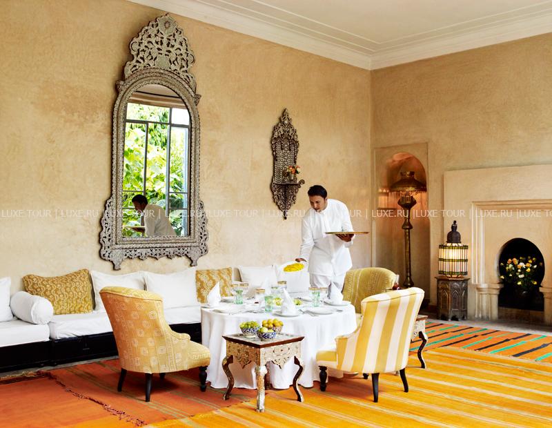 • В элегантном обеденном зале с камином и выходом в сад подают традиционные марокканские блюда, приготовленные из местных сезонных продуктов.