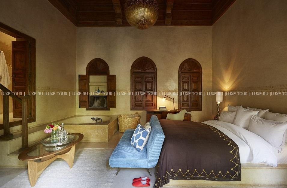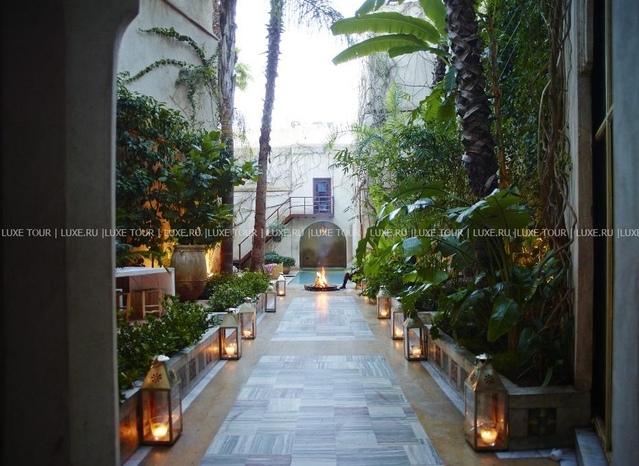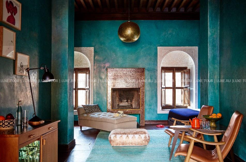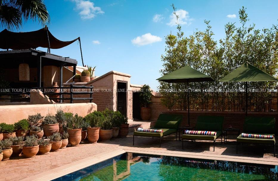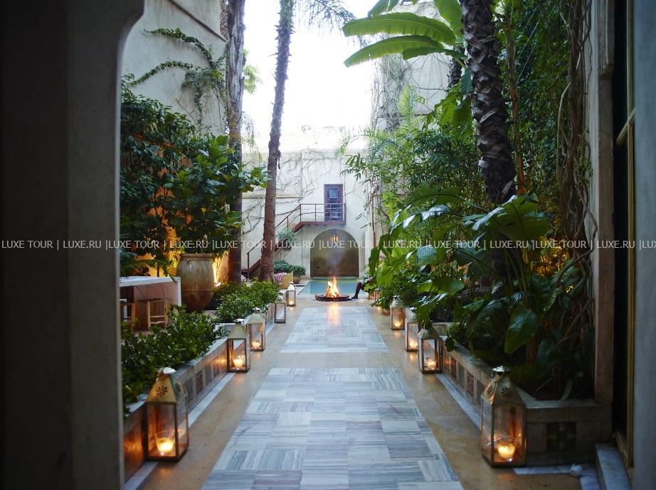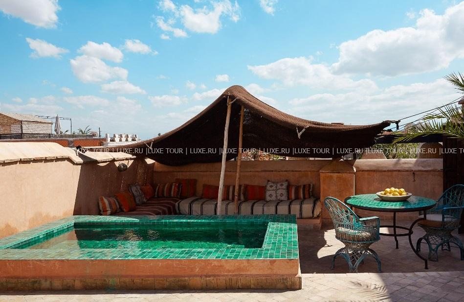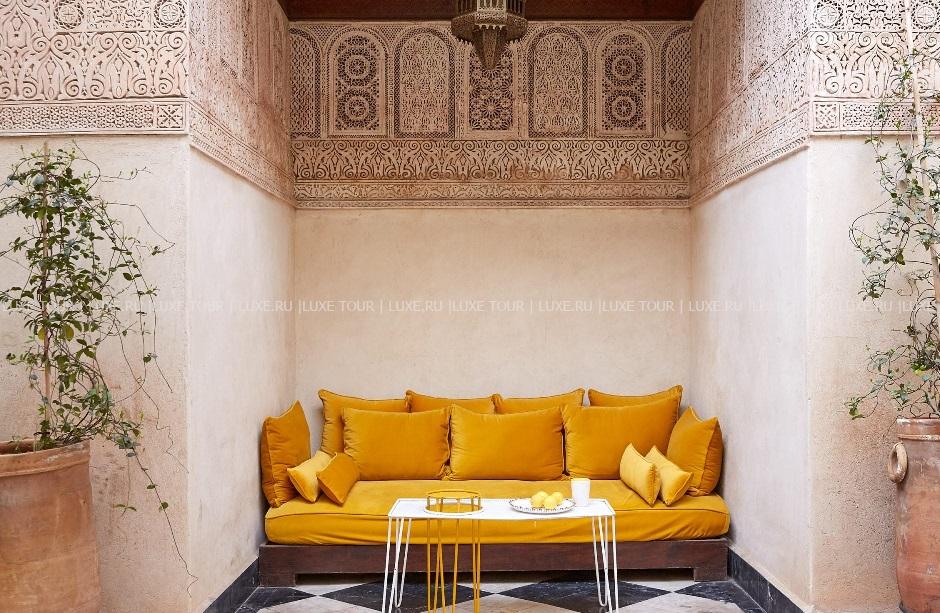 • Выпить чашечку мятного марокканского чая, ароматного кофе или бокал вина гости также могут на солнечной террасе у бассейна, в уютной библиотеке с камином и в тенистой беседке в берберском стиле.