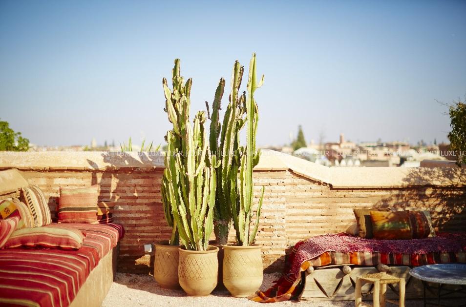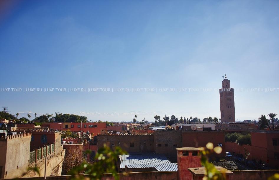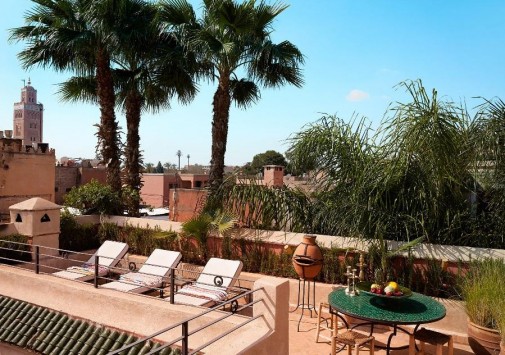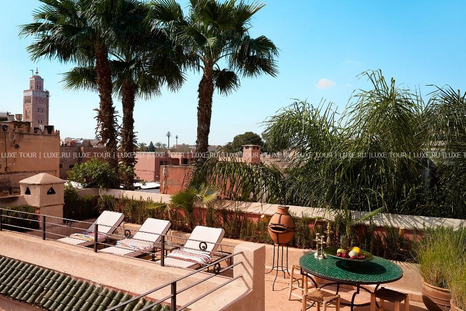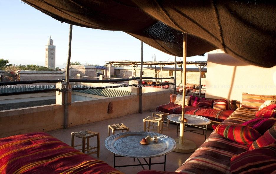 • На крыше отеля, откуда открывается великолепный вид на мечеть Кутубия и древнюю Медину, подают вкусные завтраки и легкие ланчи, а также сервируют изысканные ужины под звездами.