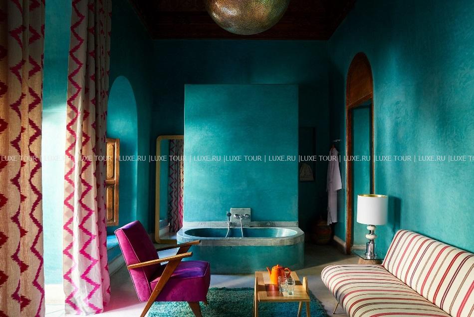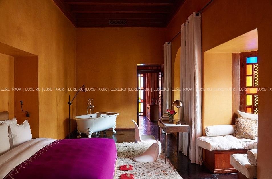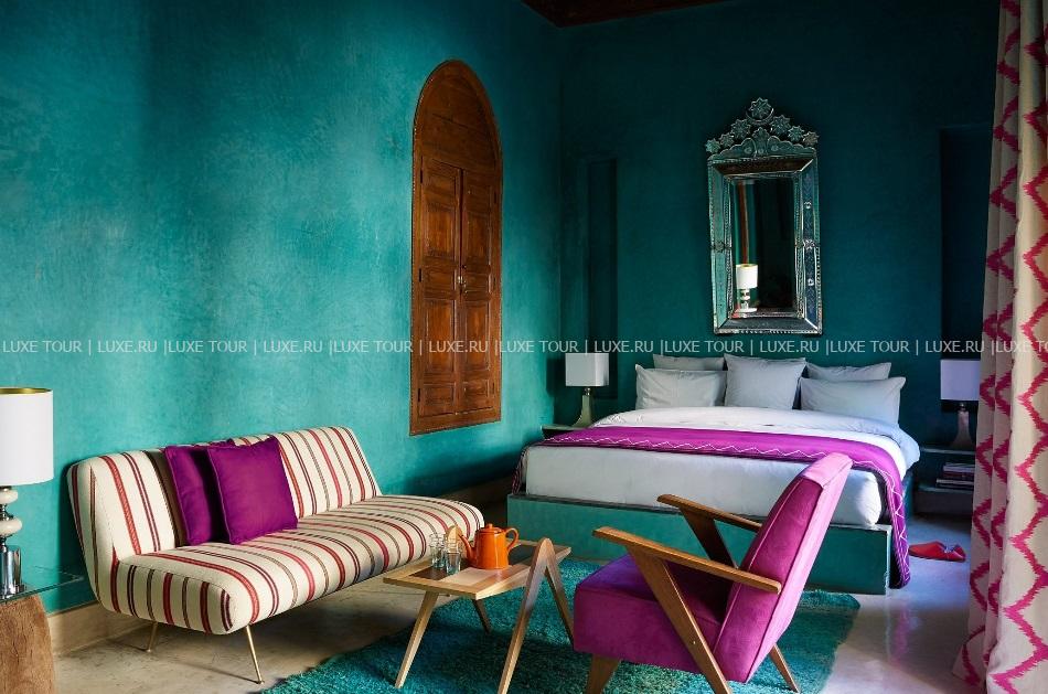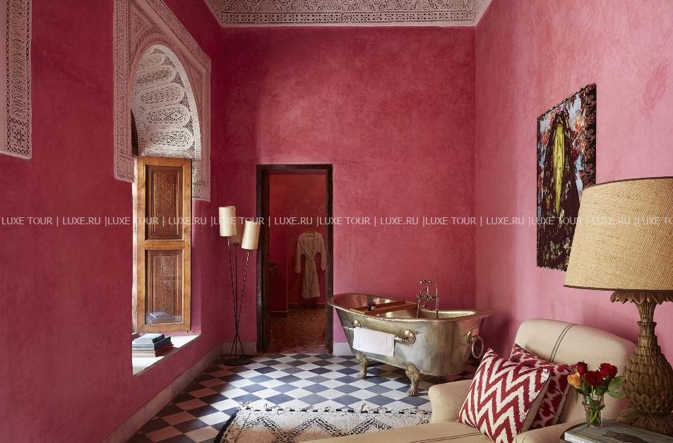 El Fenn, Марракеш – фешенебельный бутик-отель, разместившийся в традиционном риаде в нескольких шагах от древней Медины и площади Джамаа-эль-Фна. Бывший частный дом в 2002 году приобрела британка Ванесса Брэнсон – основательница международного бьеннале Марракеша, которая решила открыть здесь отель и дополнила аутентичные интерьеры риада оригинальными элементами дизайна и произведениями современного искусства. Гостей ждут необычно оформленные элегантные номера и Spa-салон, предлагающий эксклюзивные процедуры, внутренние дворы, засаженные цитрусовыми деревьями, и терраса на крыше с видом на знаменитую мечеть Кутубия, лазурные бассейны, уютный пиано-бар и ресторан, где подают лучшие марокканские блюда. El Fenn, Марракеш – роскошный оазис в центре древнего города.