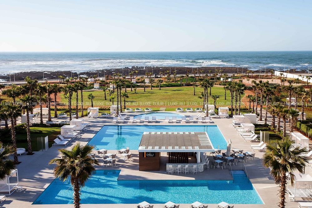 На берегу Атлантического океана, на живописной территории с ухоженными садами и гольф-полем находится Vichy Celestins Spa Hotel Casablanca – современный фешенебельный отель с высочайшими стандартами сервиса, стильным дизайном и расслабляющей атмосферой. Здесь созданы идеальные условия для релаксации, оздоровления и восстановления сил – от элегантных номеров с видом на океан и гастрономических изысков в трех ресторанах до крупнейшего в Африке Spa-комплекса, представляющего процедуры и программы на основе минеральной косметики и целебной воды Vichy. Отель Vichy Celestins Spa Hotel Casablanca предлагает сочетание марокканского колорита и уникальной концепции всемирно известного французского бренда.