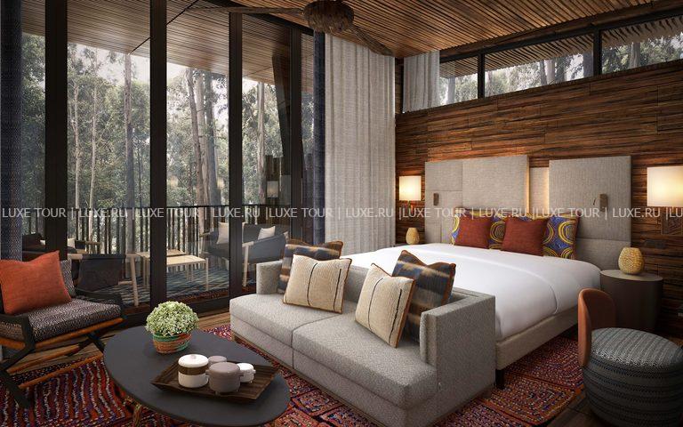 One&Only Gorilla's Nest, Руанда расположен у северо-западной границы страны, в предгорьях вулканов Вирунга, в 120 км от столицы Кигали, а также в 2,5 часах езды или 25 минутах перелета на вертолете из международного аэропорта и в 45 минутах перелета на вертолете с вертолетной площадки отеля One&Only Nyungwe House.